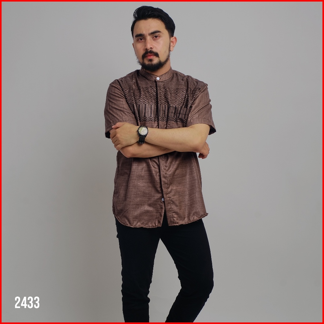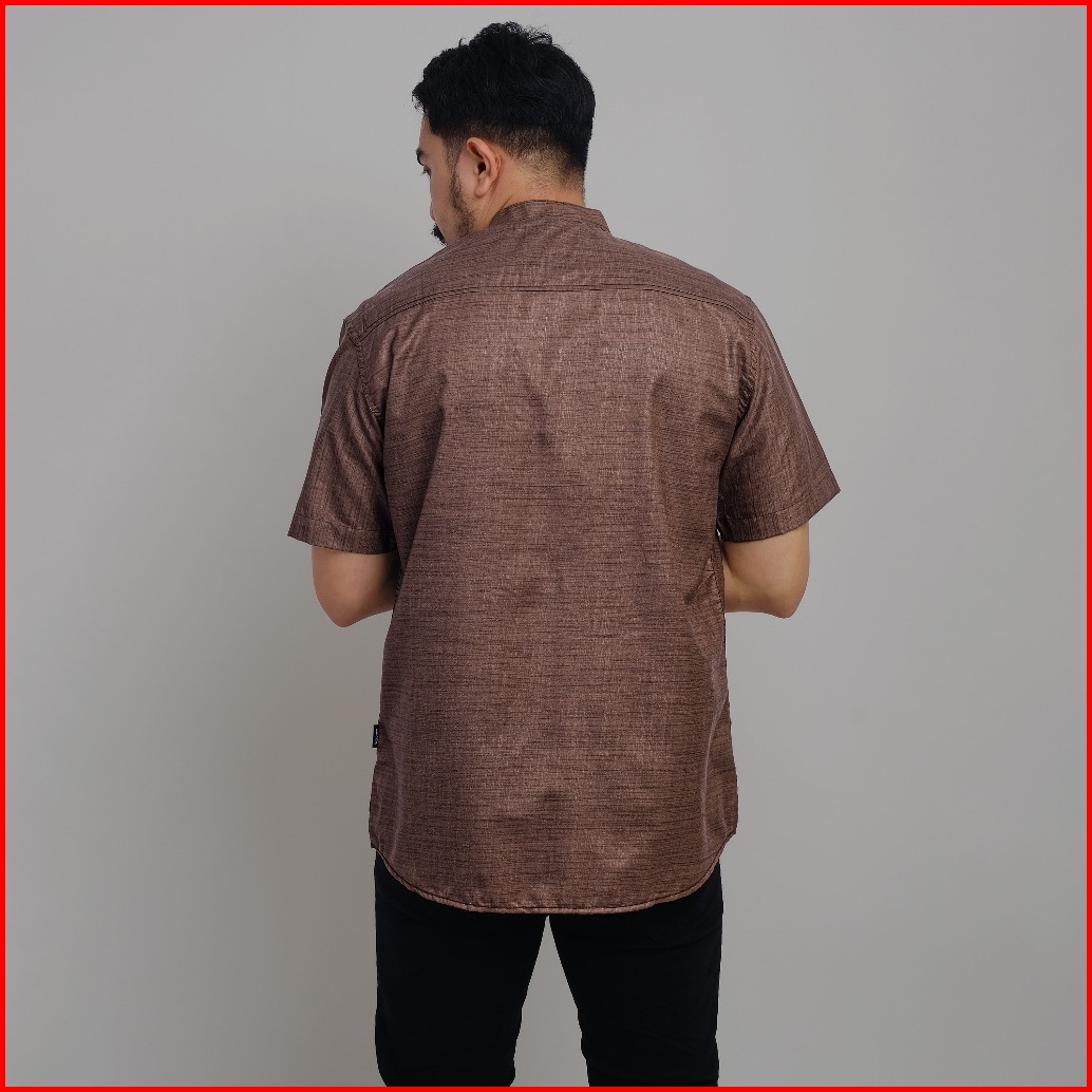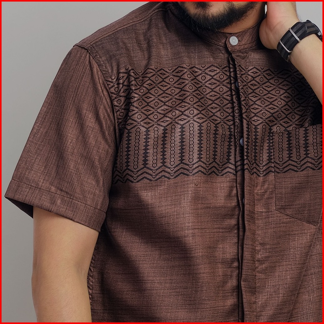 Dgm Kemeja Pria Koko Coklat Bistre Bordir Lengan Pendek Motif Diagonal 2433
