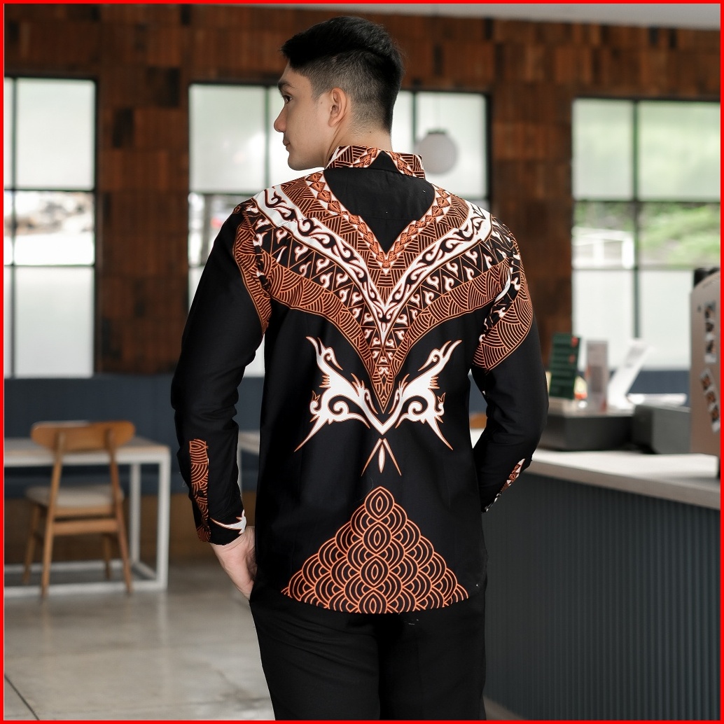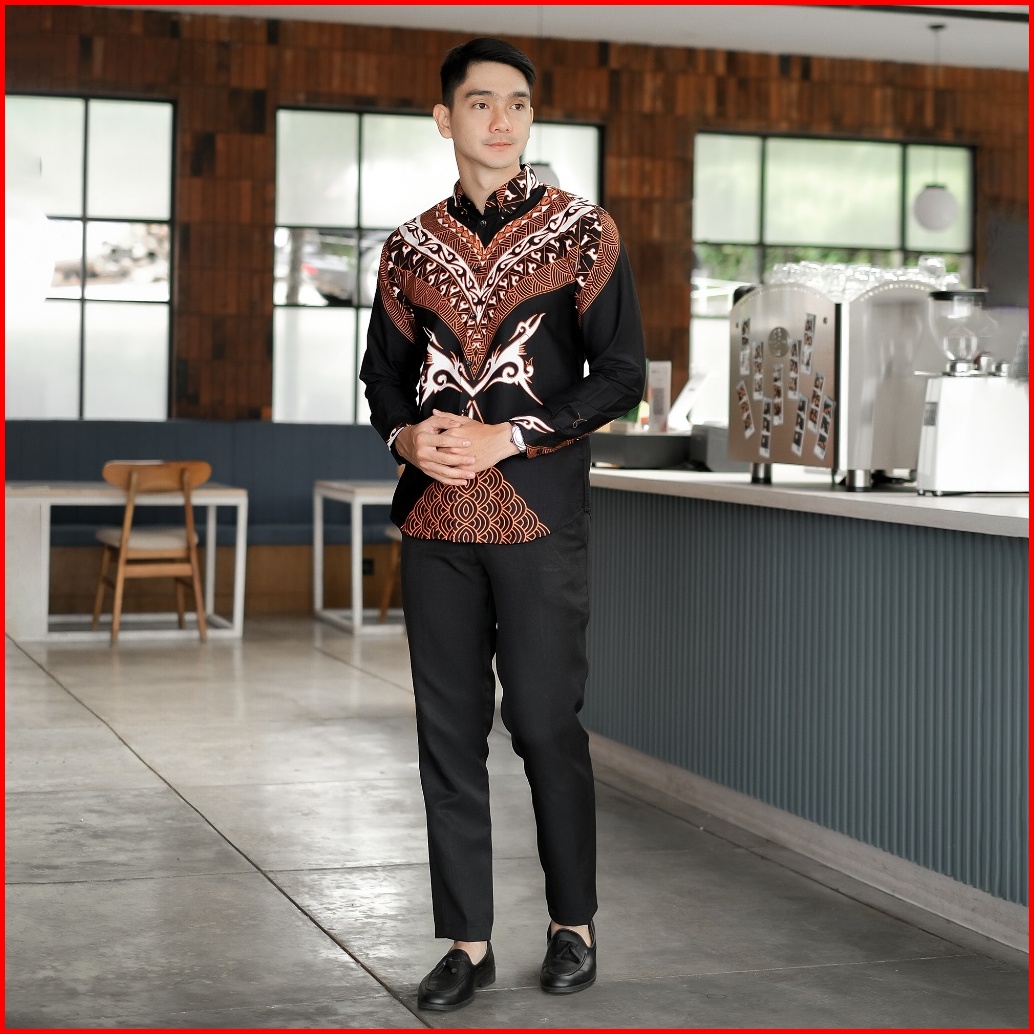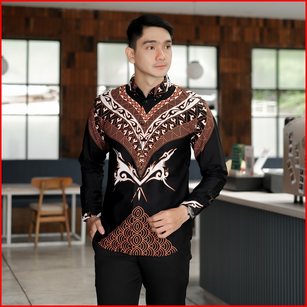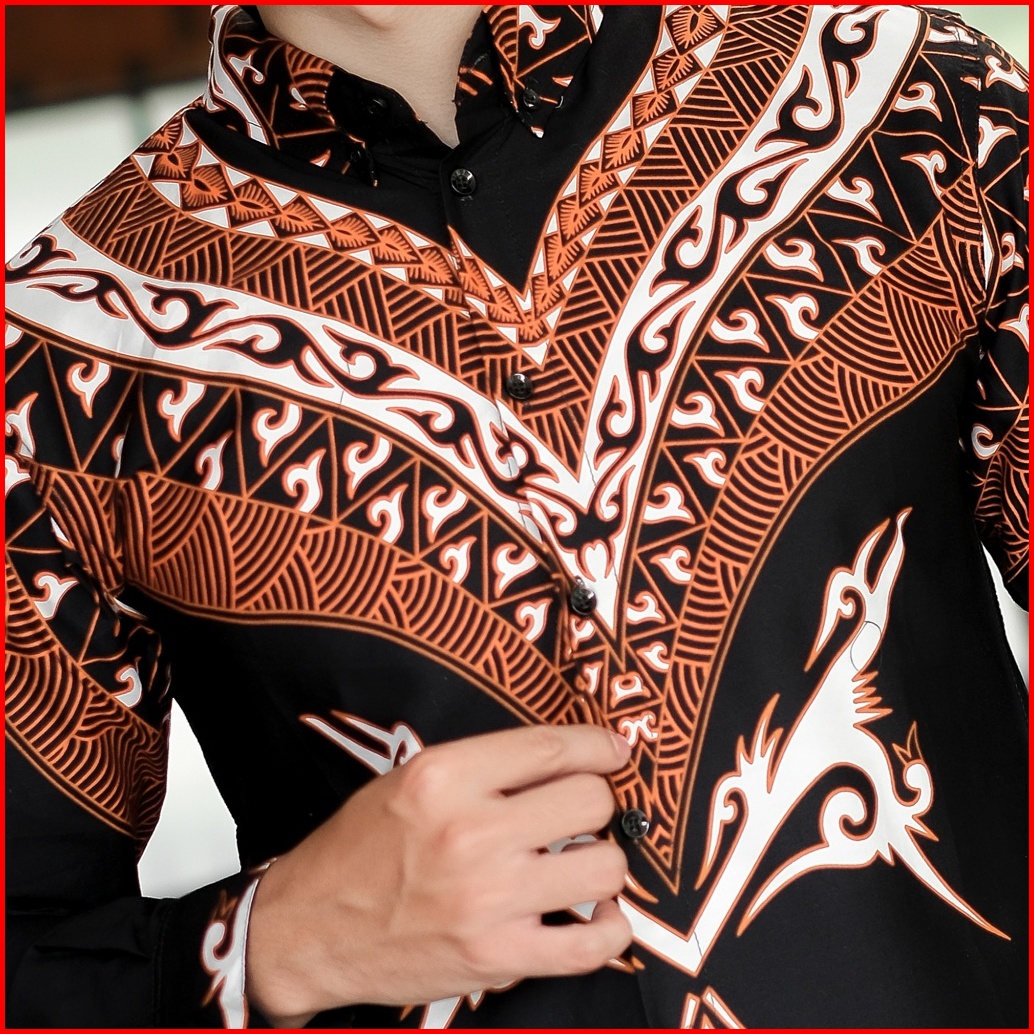 Dgm Batik Pria Lengan Panjang Premium Motif Rajawali Hitam Coklat 1239