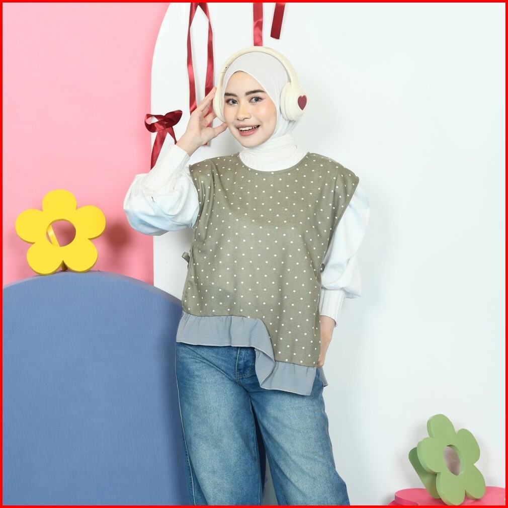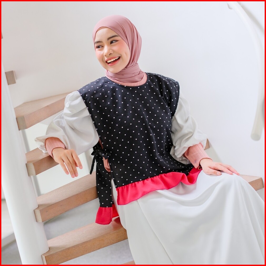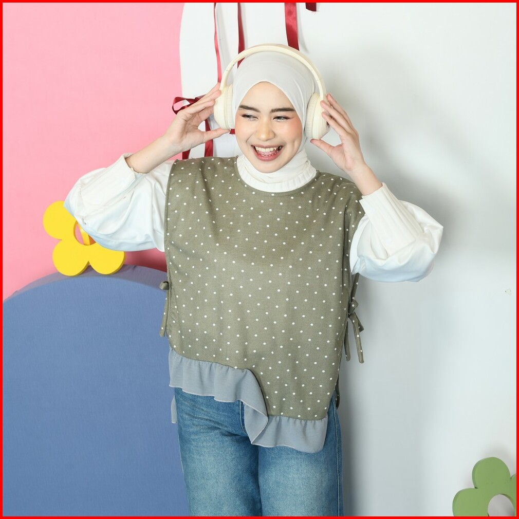 Mybamus Array Playfull Outer Vest Rompi Wanita Polkadot Kotak Tali Samping Polka