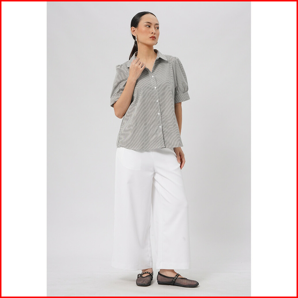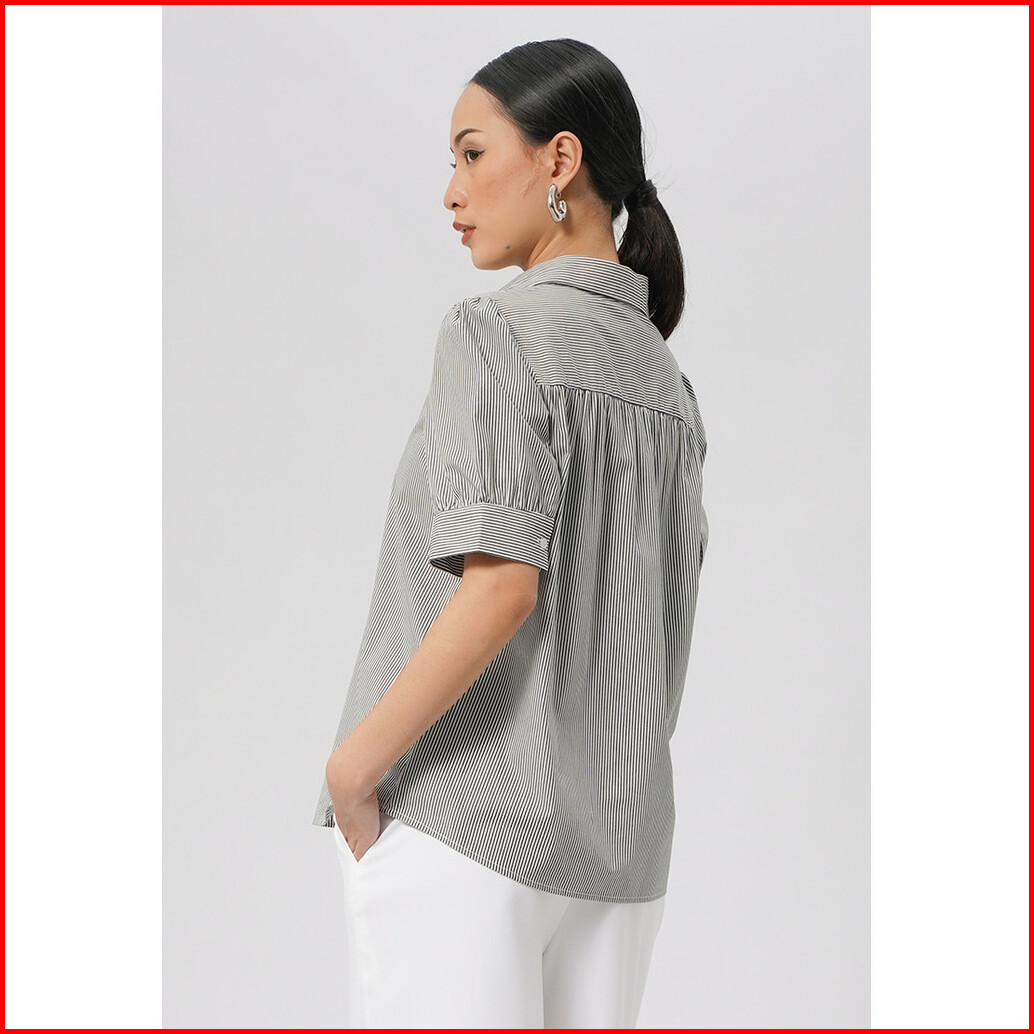 Executive Short Sleeve Stripes Blouse Black