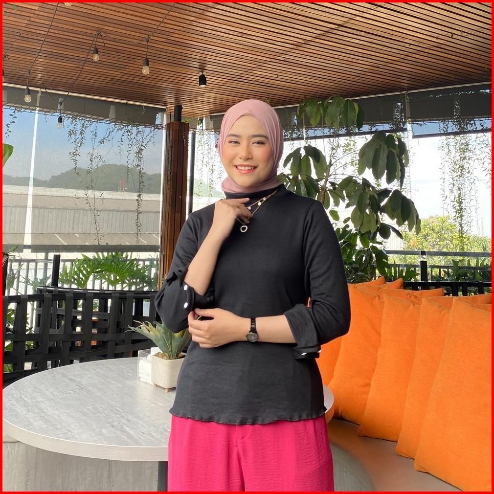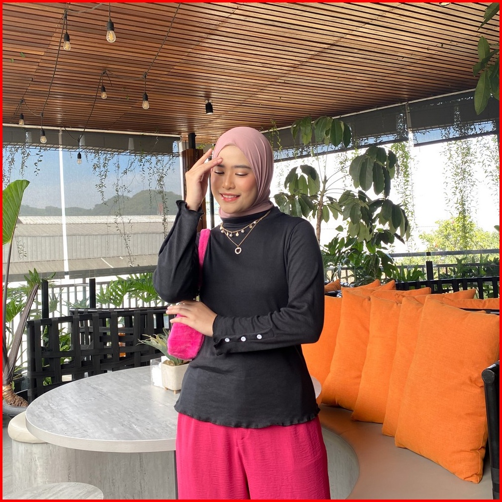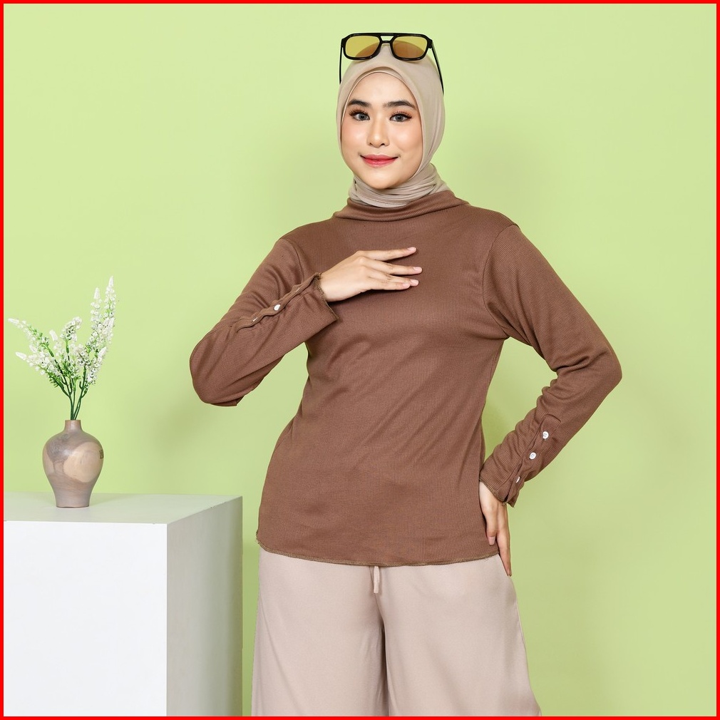 Mybamus Ruyi Inner Rib Top Manset Wanita Daleman Tangan Panjang