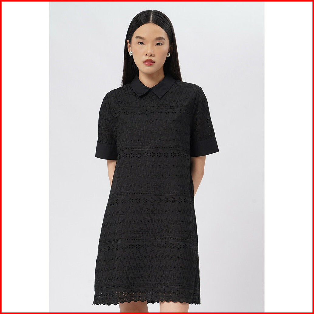 Executive Short Sleeve Eyelet Mini Dress Black