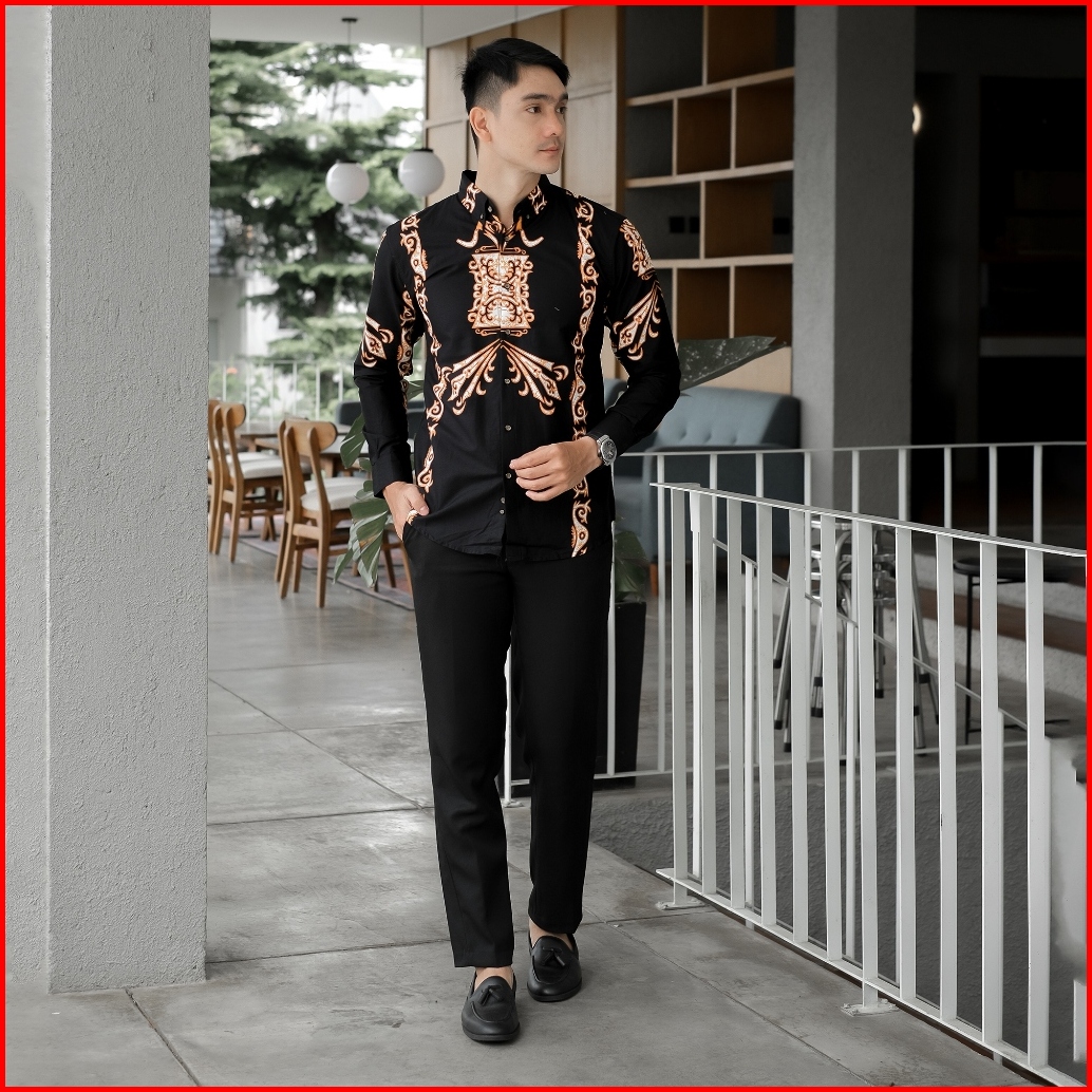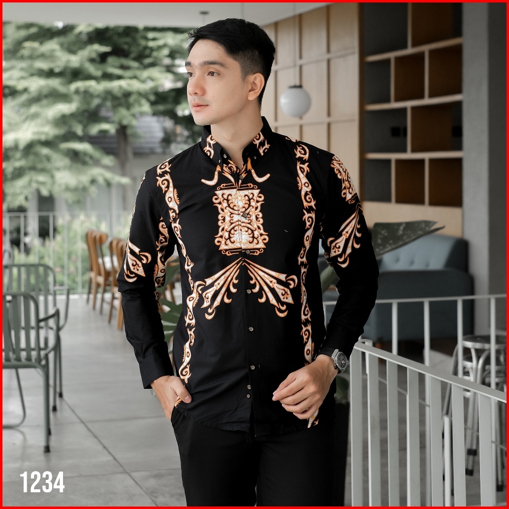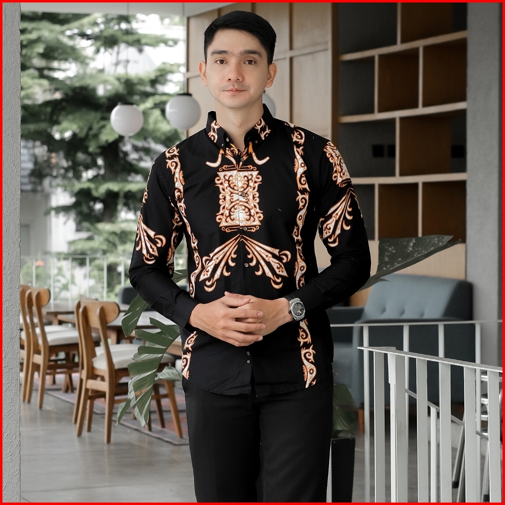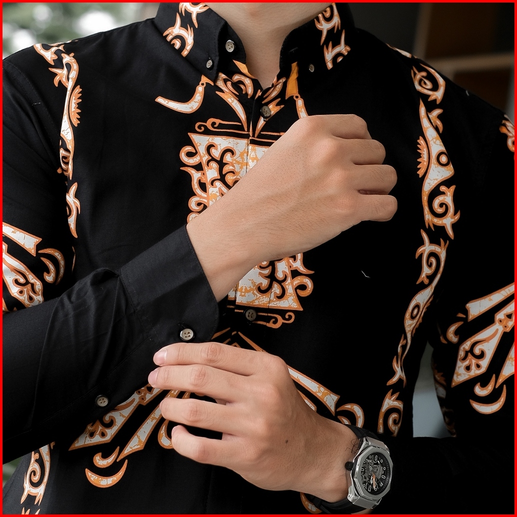 Dgm Batik Pria Lengan Panjang Premium Motif Belati Hitam 1234
