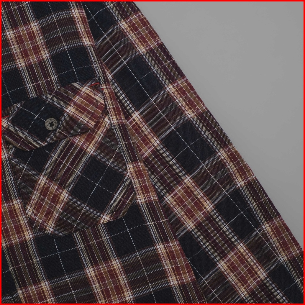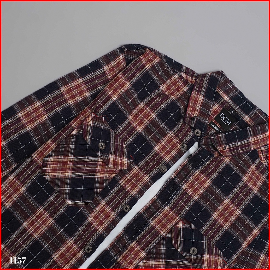 Dgm Kemeja Pria Flanel Double Pocket Premium Hitam List Merah Putih Flanel Kantong Dua 1157