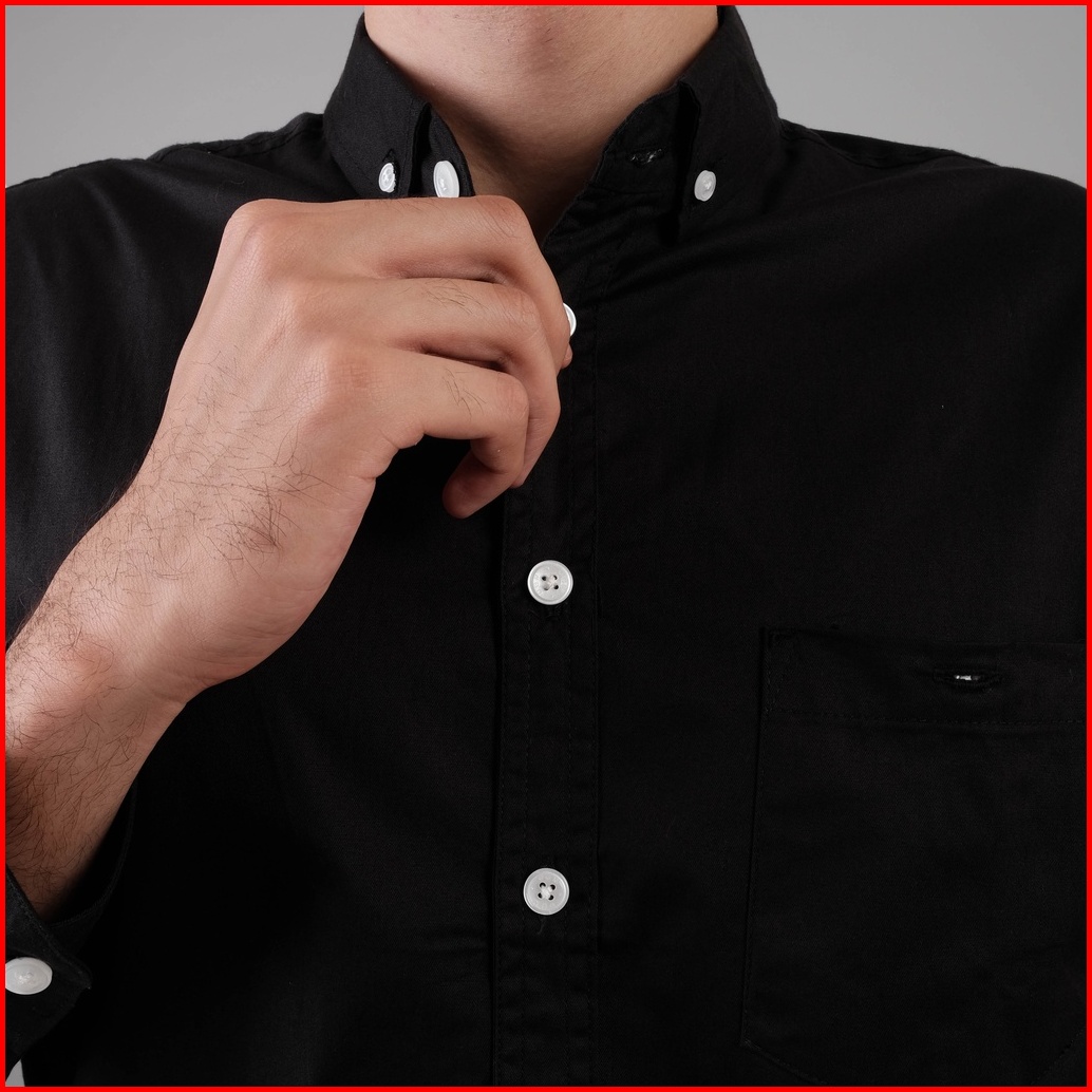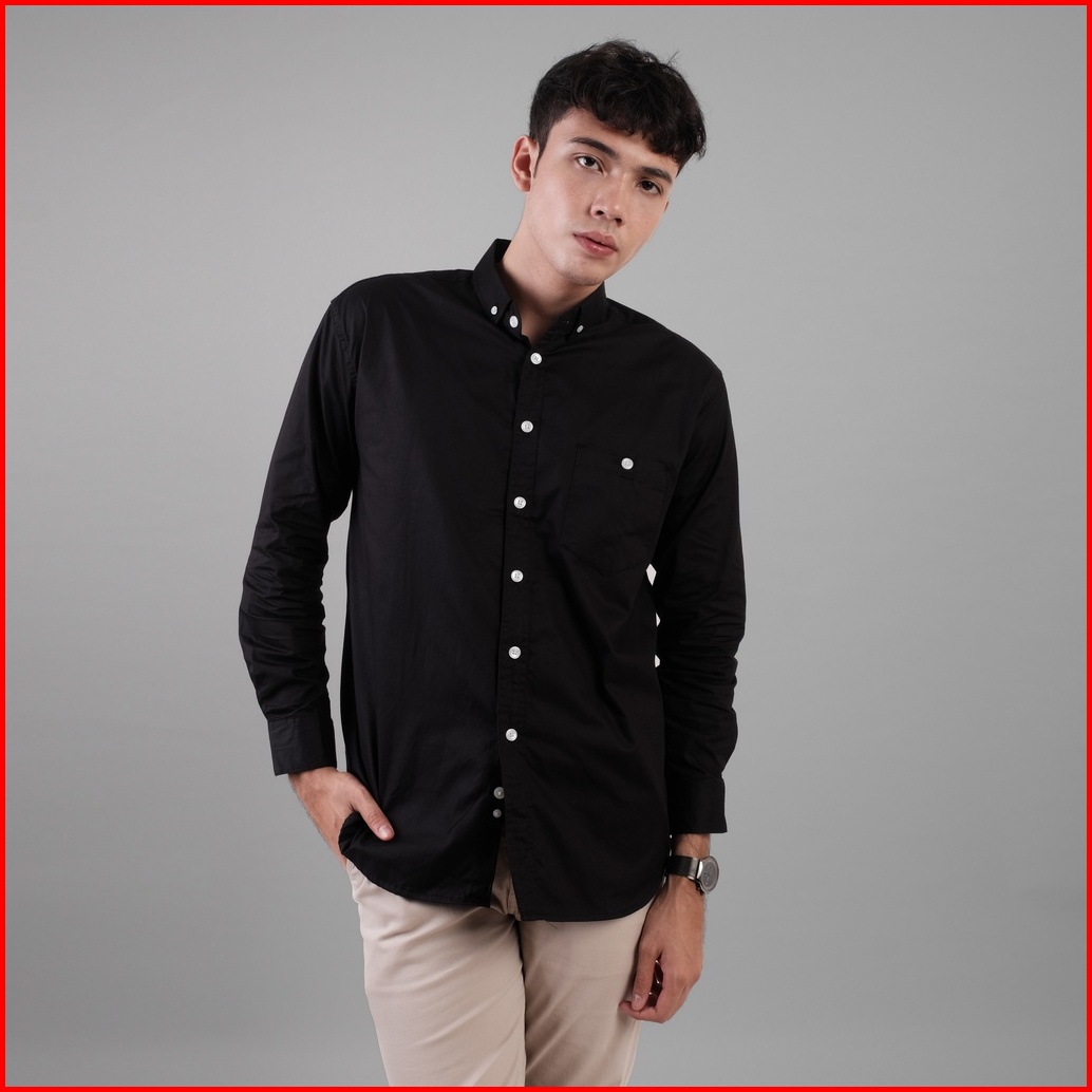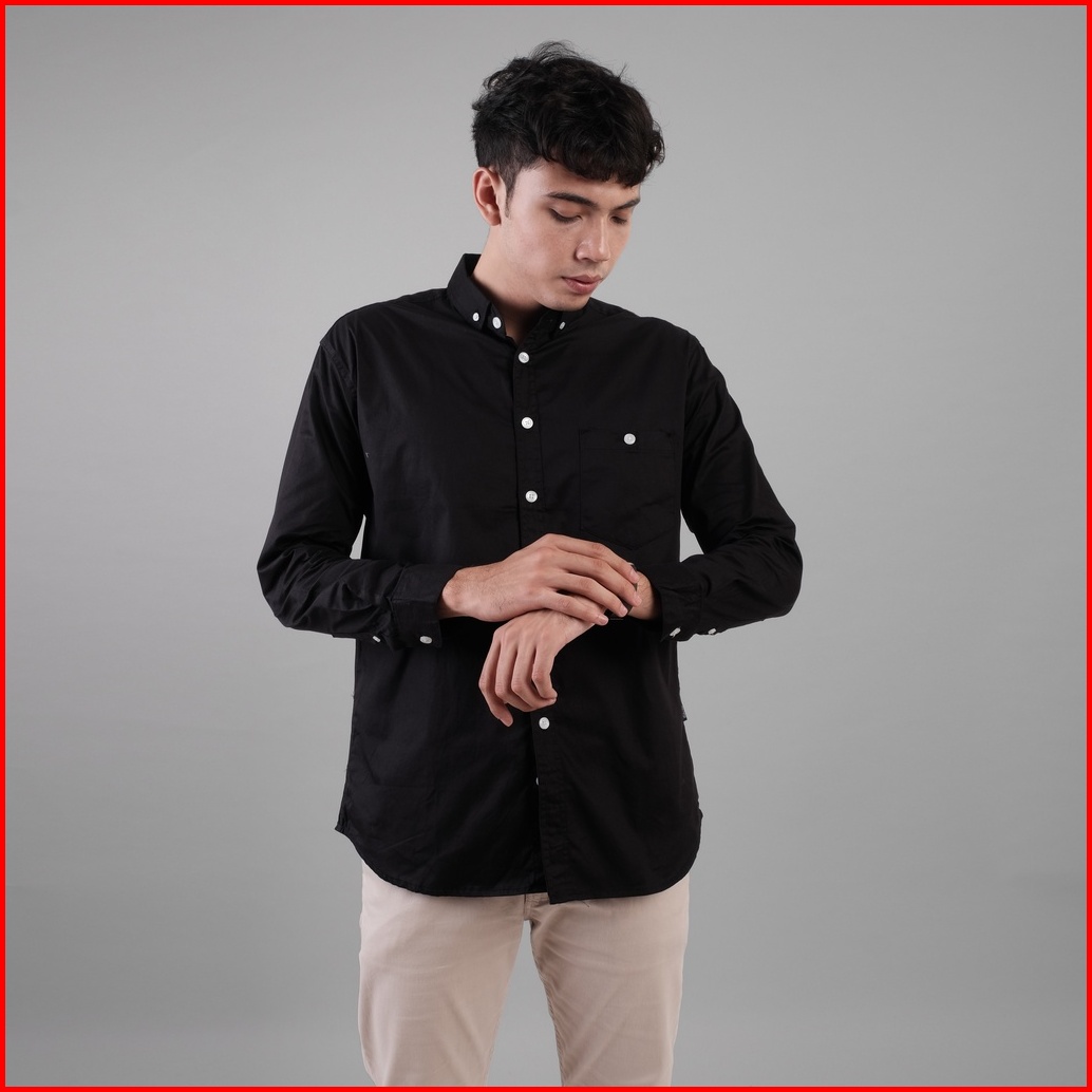Dgm Kemeja Hitam Polos Pria Lengan Panjang Cotton Wax Oil 1442