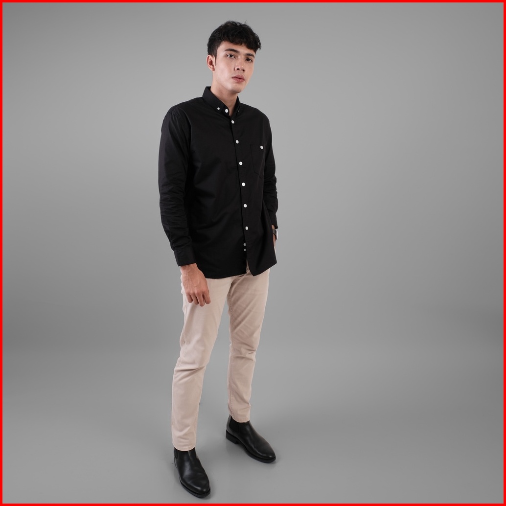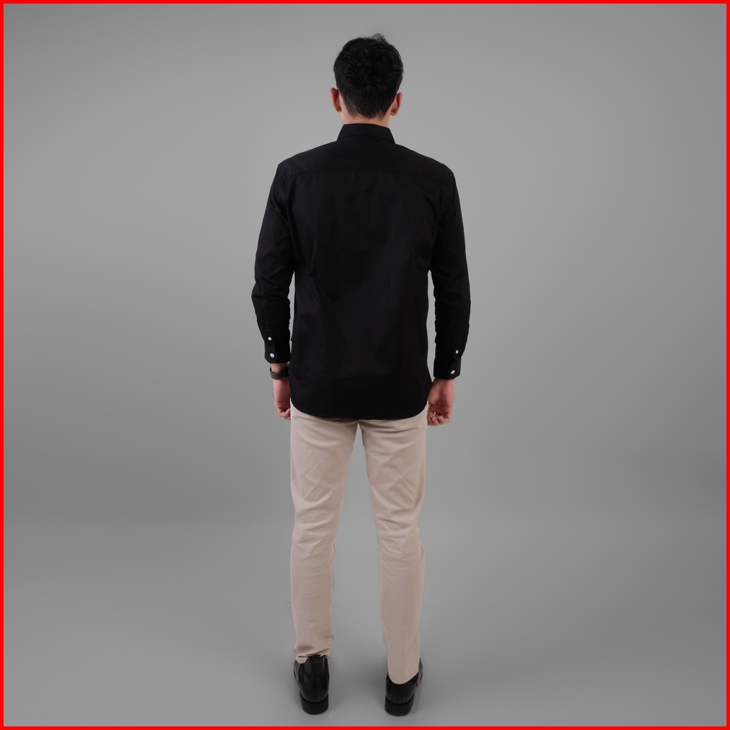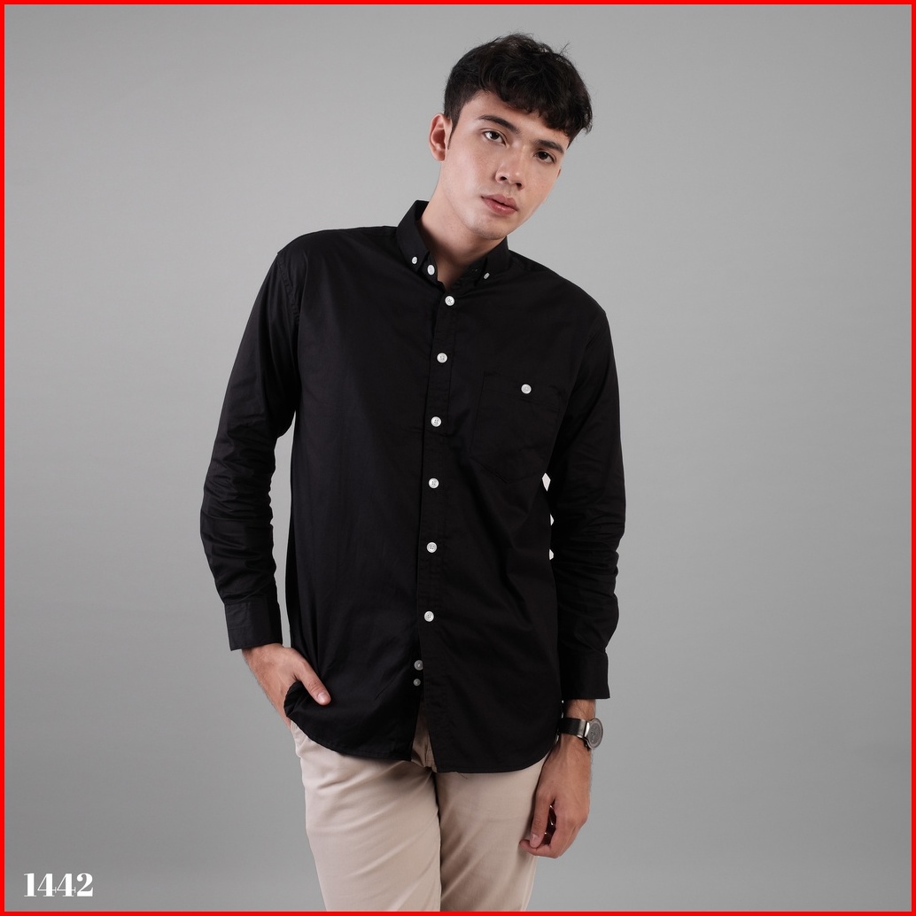 Dgm Kemeja Hitam Polos Pria Lengan Panjang Cotton Wax Oil 1442