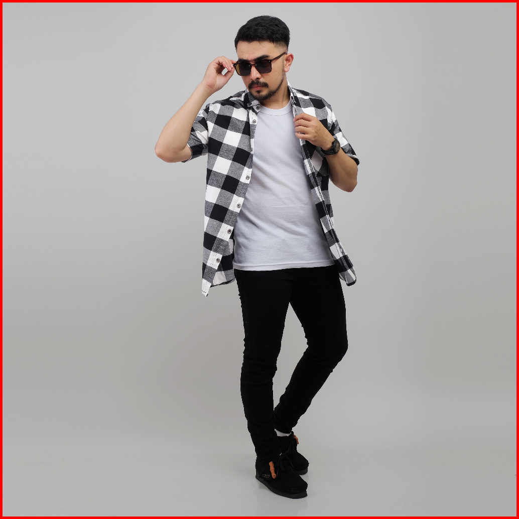 Dgm Kemeja Flanel Lengan Pendek Casual 1527