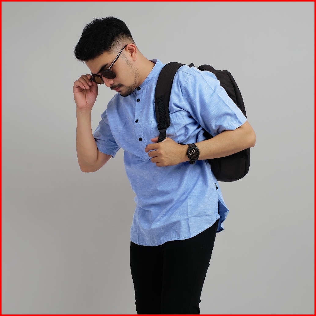 Dgm Kemeja Polos Sanghai Pria Lengan Pendek Blue Fischeri Kemeja Pria Kemeja 1230