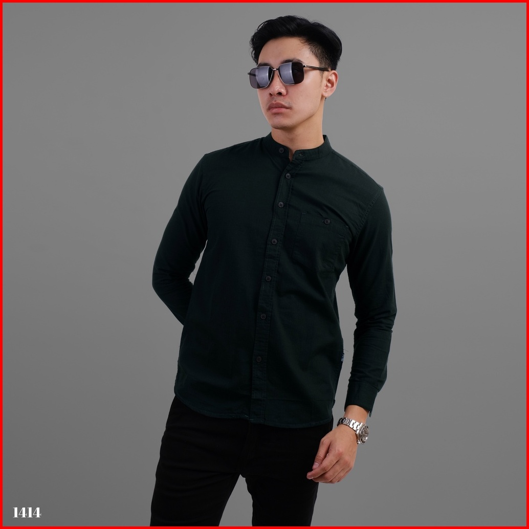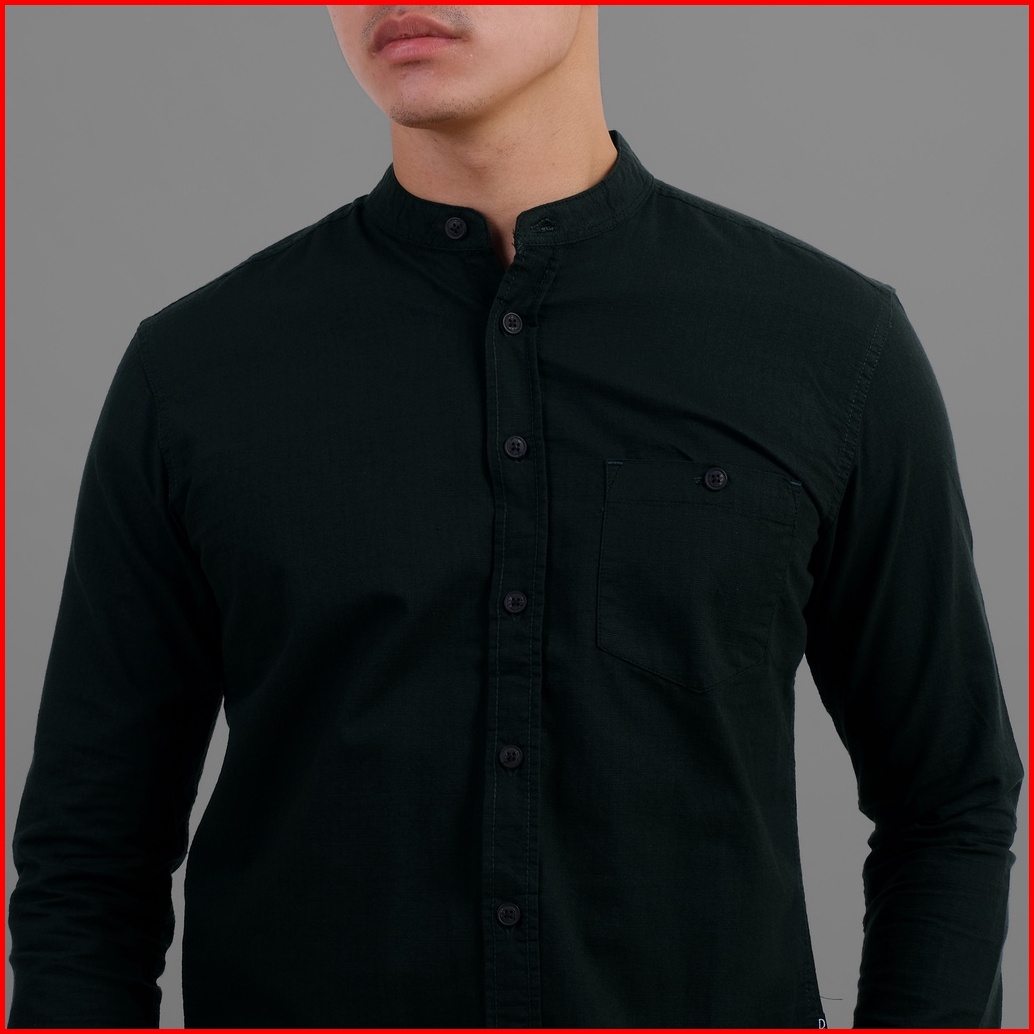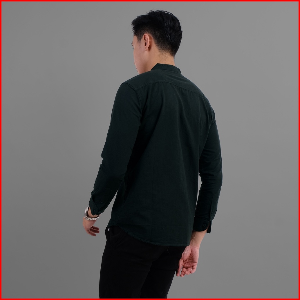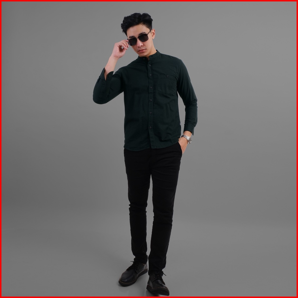 Dgm Kemeja Polos Pria Lengan Panjang Kerah Sanghai Dark Green 1414
