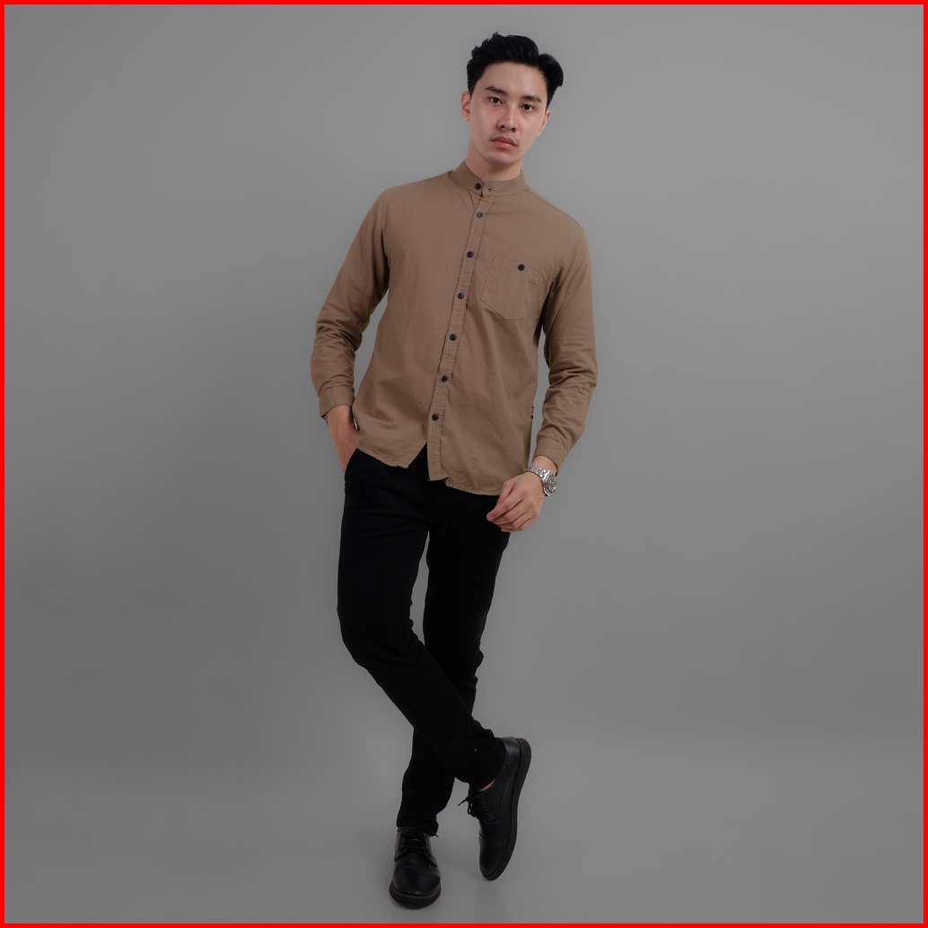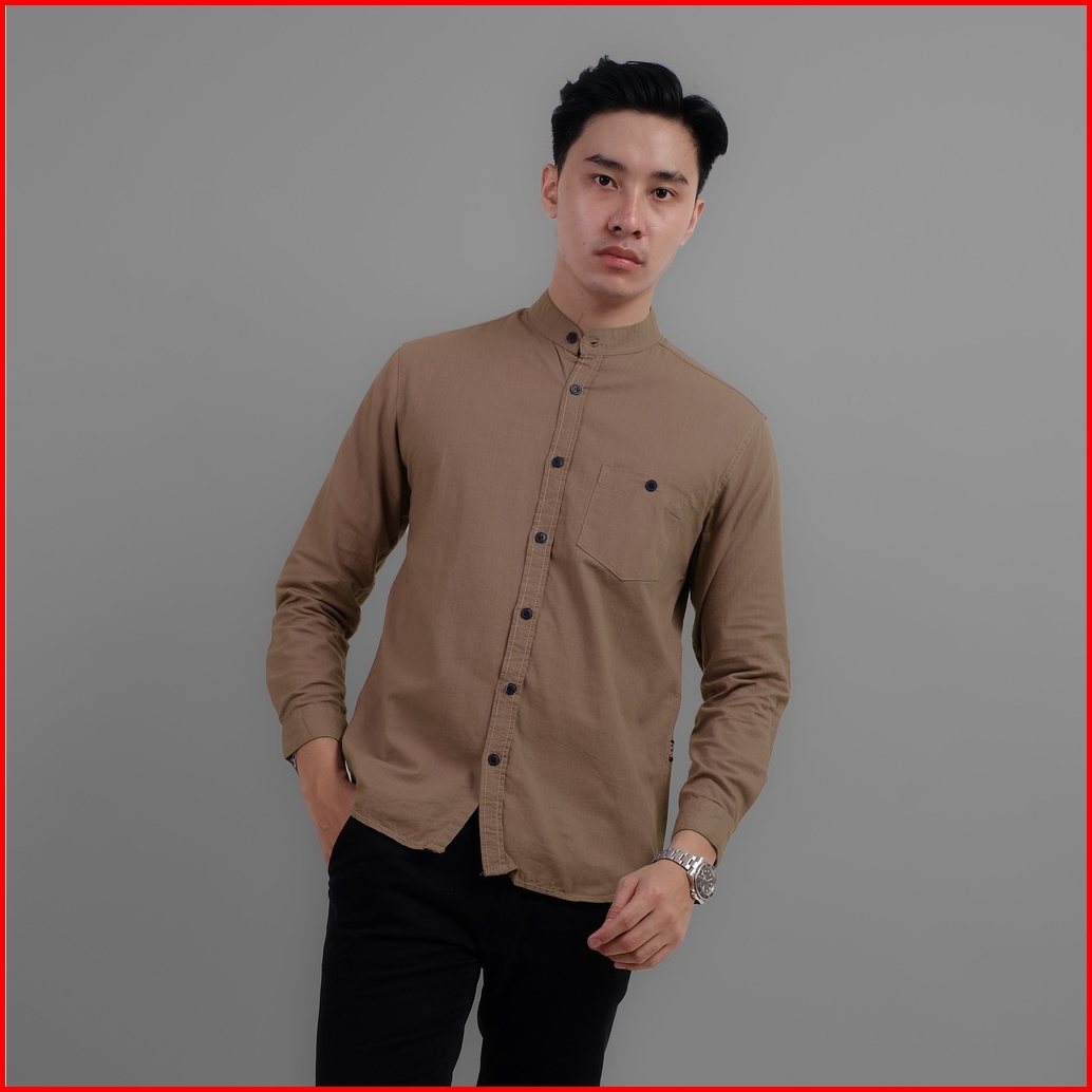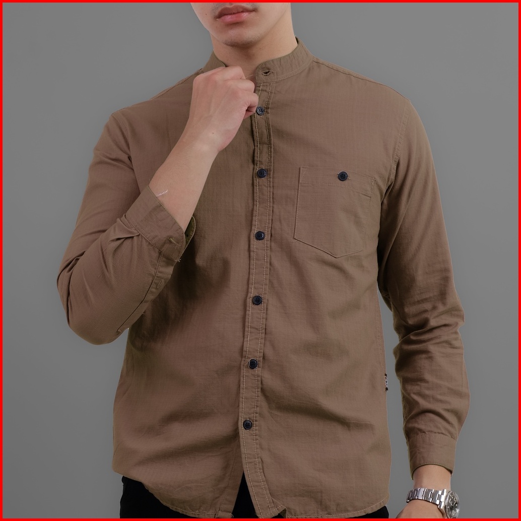 Dgm Kemeja Polos Sanghai Pria Lengan Panjang Kemeja Pria Brown Kemeja 1993