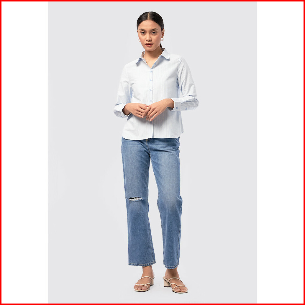 Executive Long Sleeve Oxford Stripes Shirt Lt. Blue