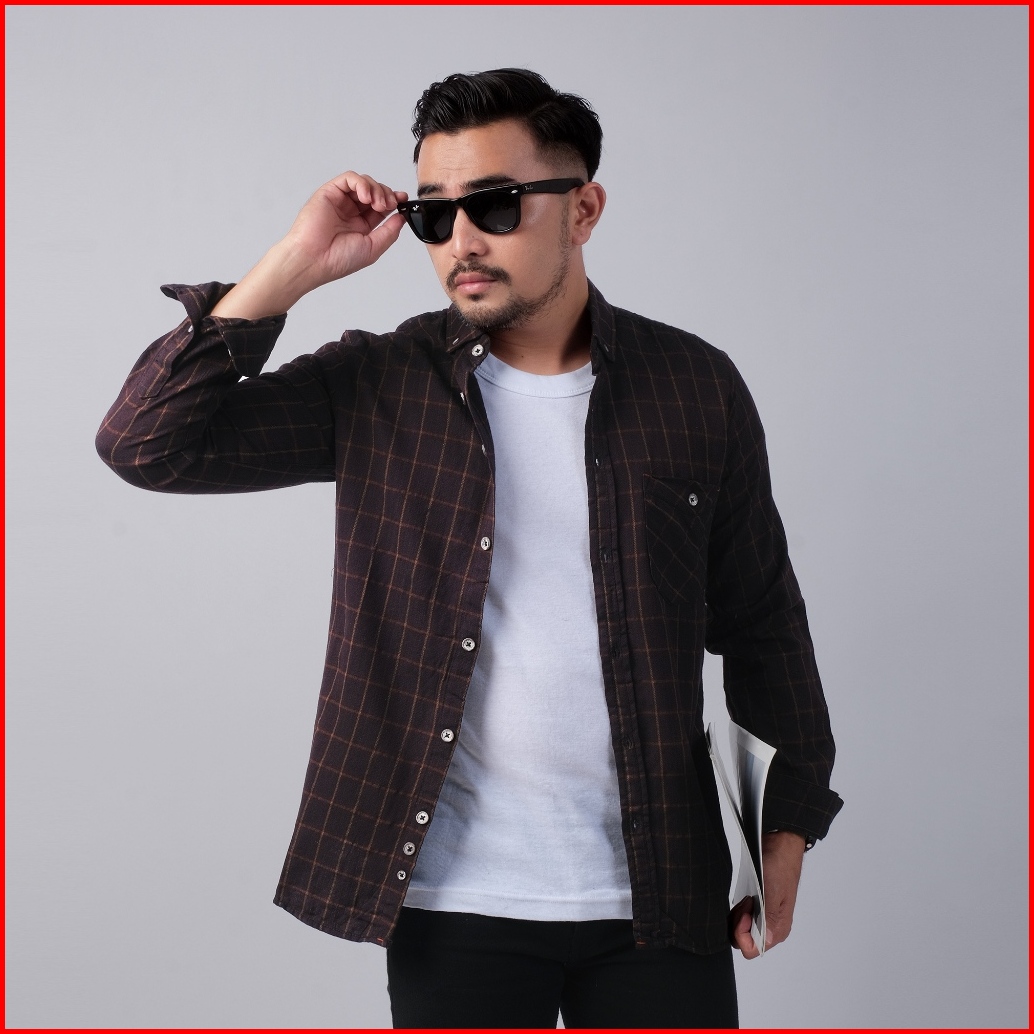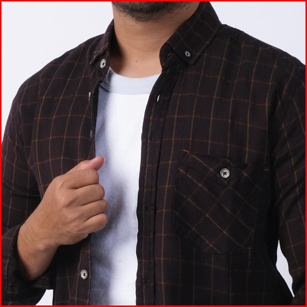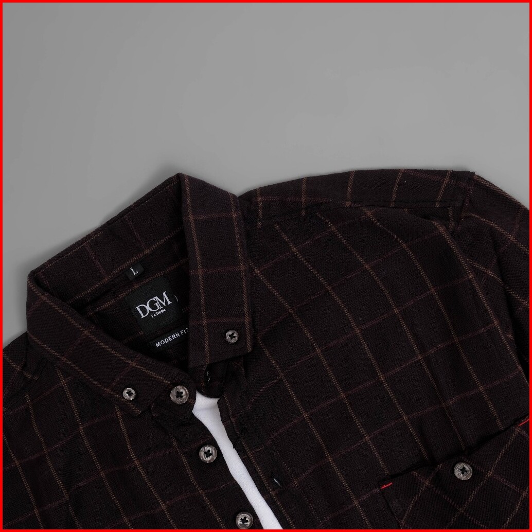 Dgm Fashion Kemeja Pria Flanel Premium Lengan Panjang Kotak-kotak Coklat 1726