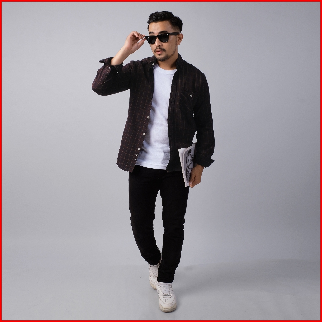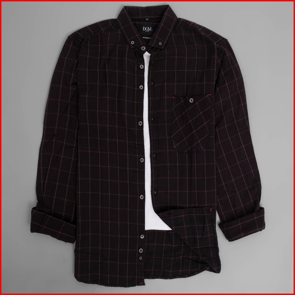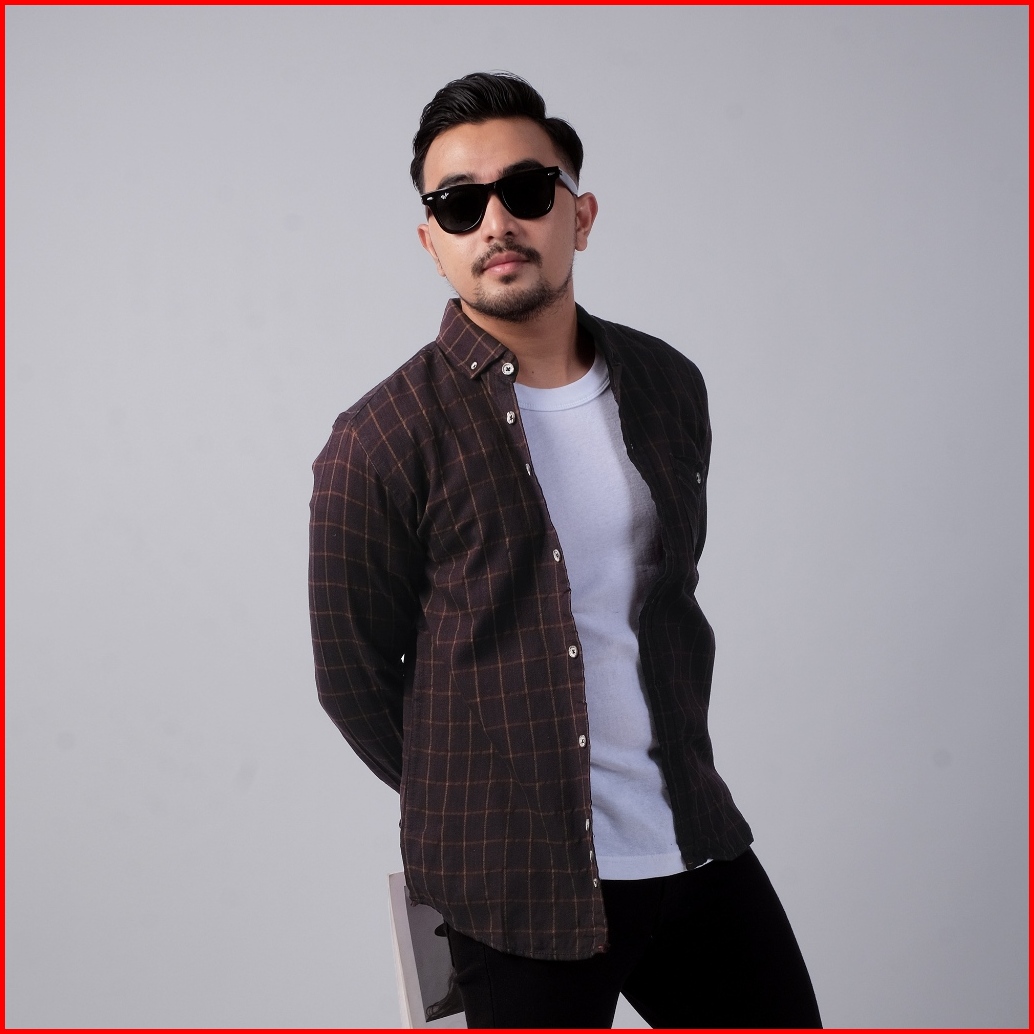 Dgm Fashion Kemeja Pria Flanel Premium Lengan Panjang Kotak-kotak Coklat 1726