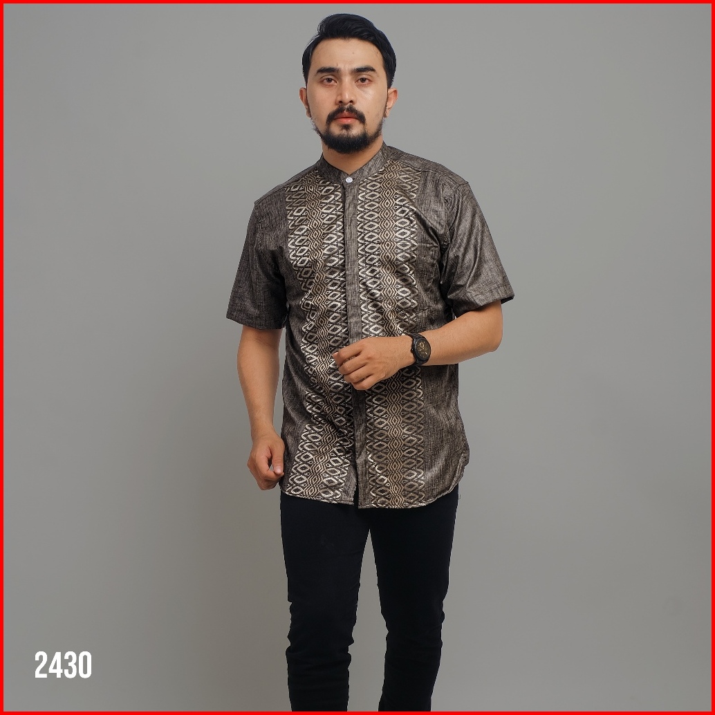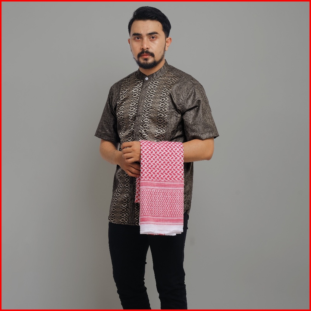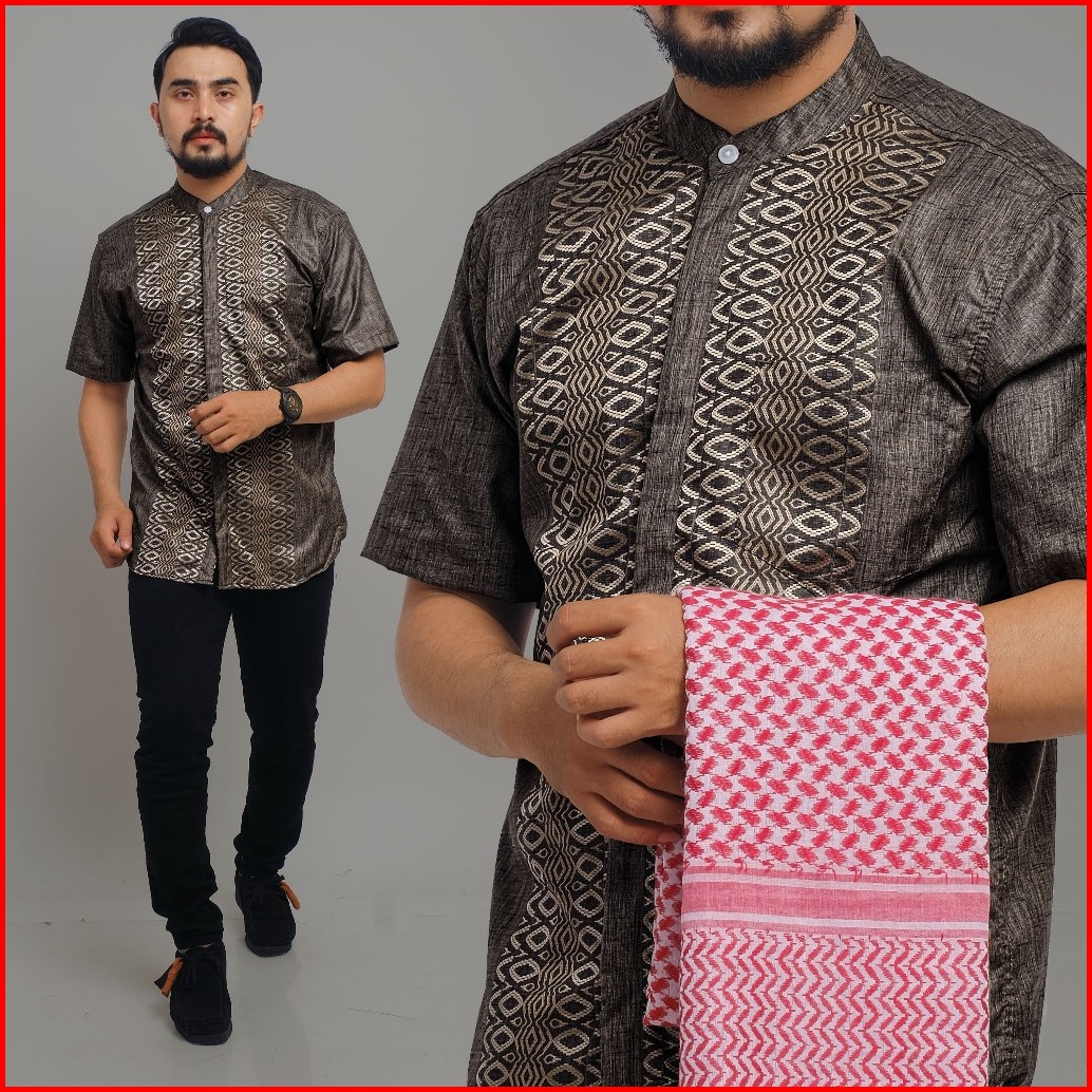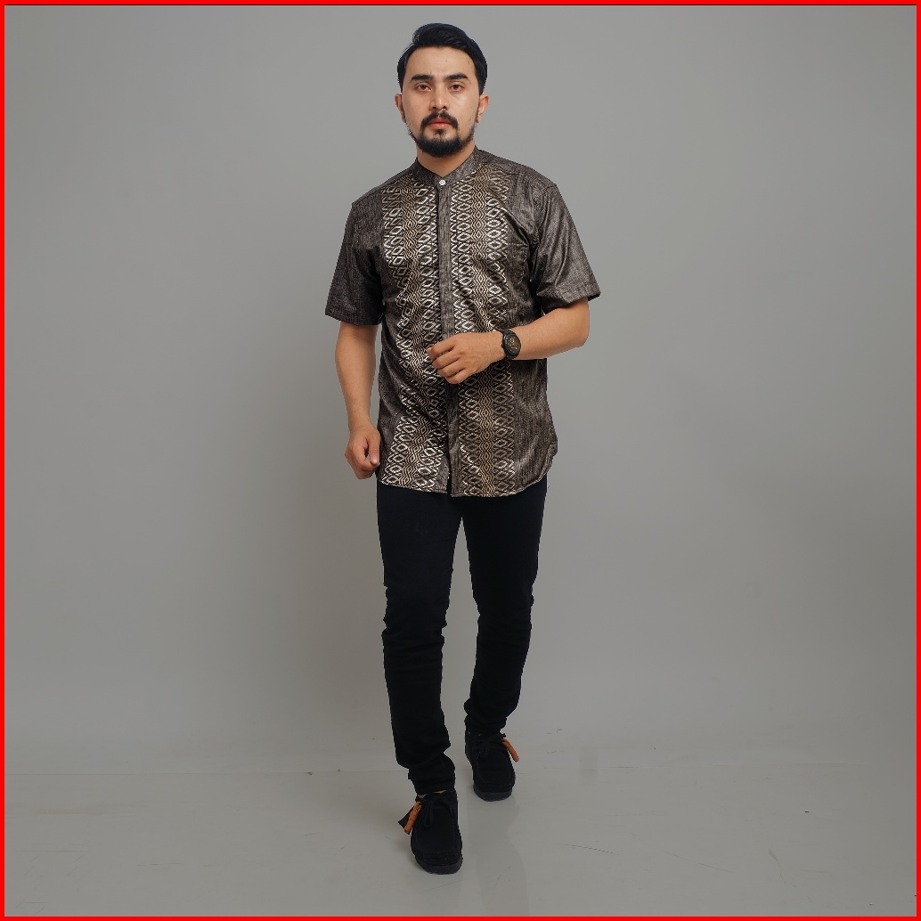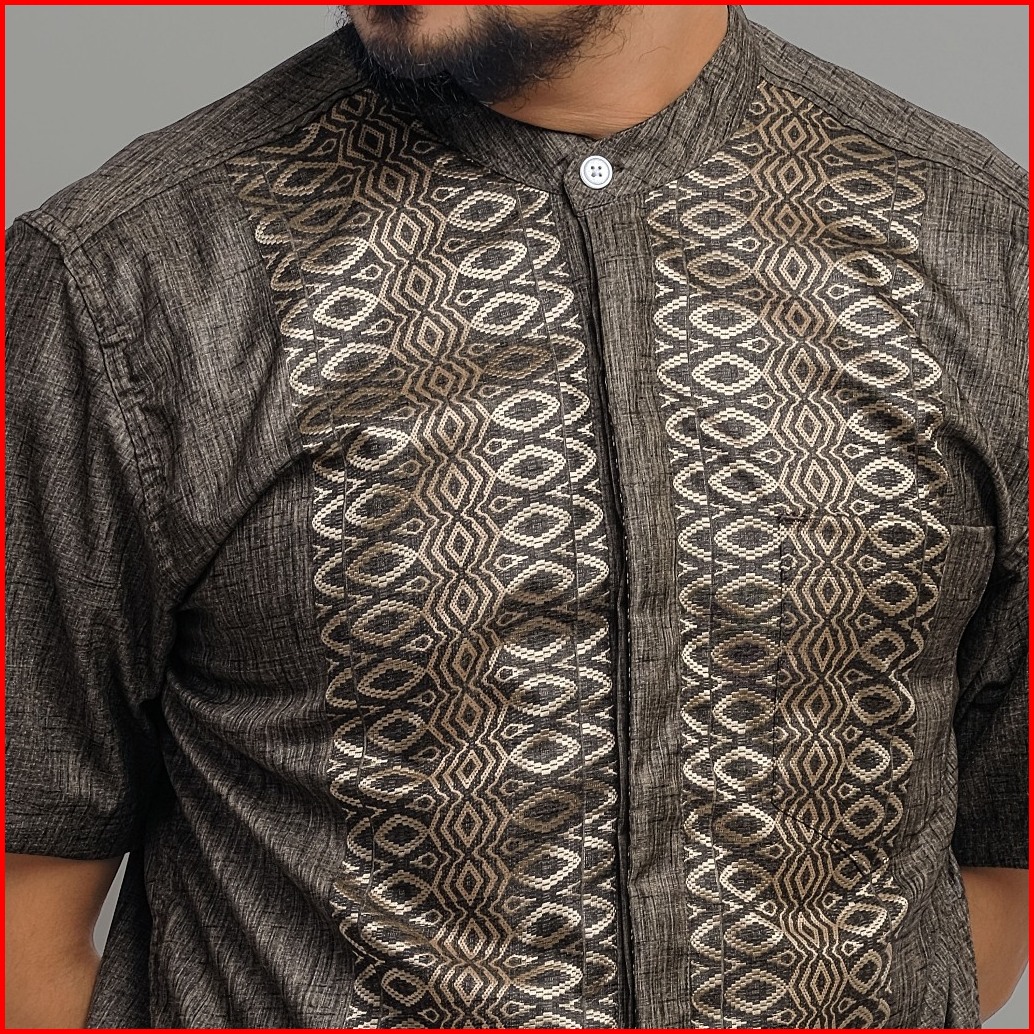 Dgm Kemeja Pria Koko Caramel Bordir Lengan Pendek Motif Geometri Lingkaran 2430
