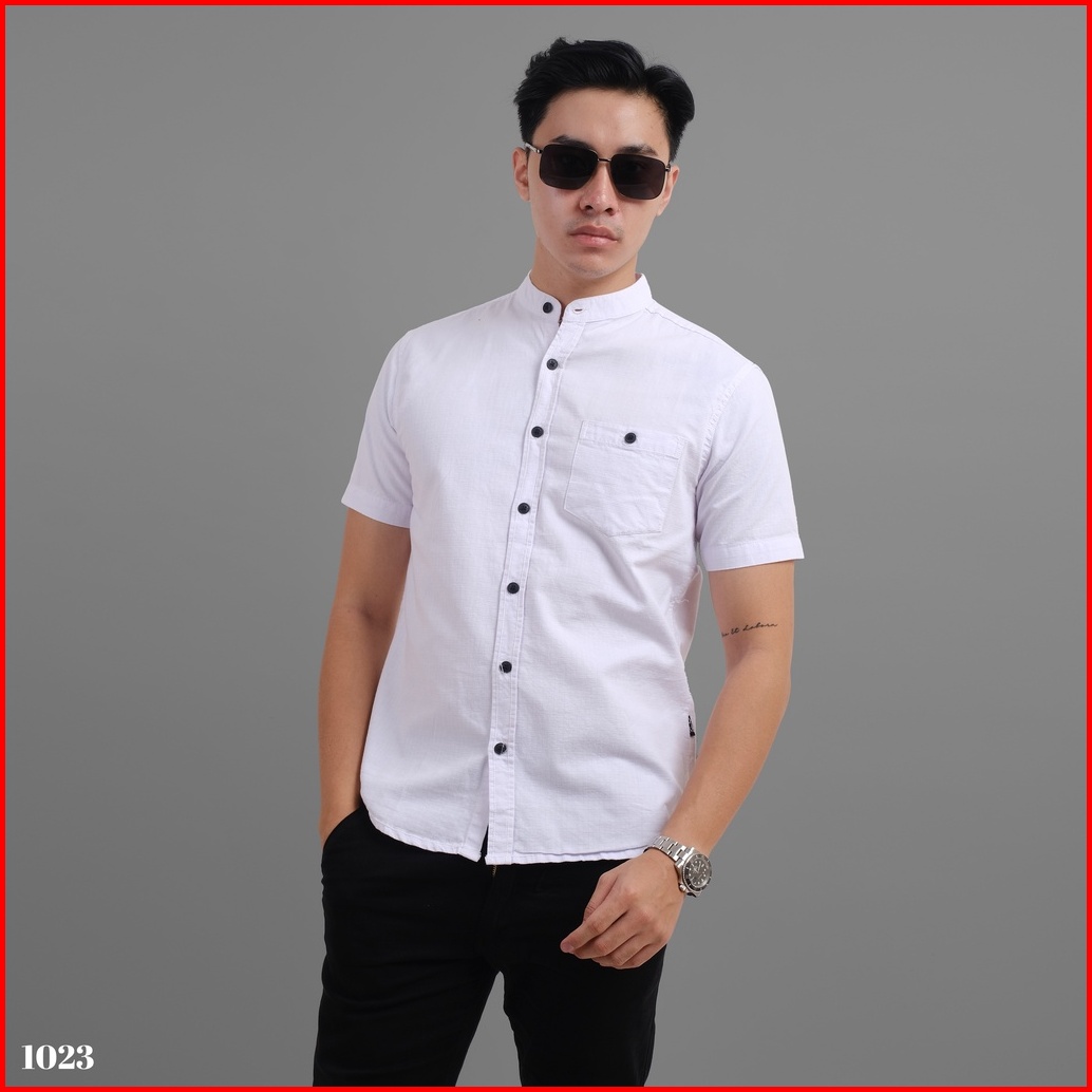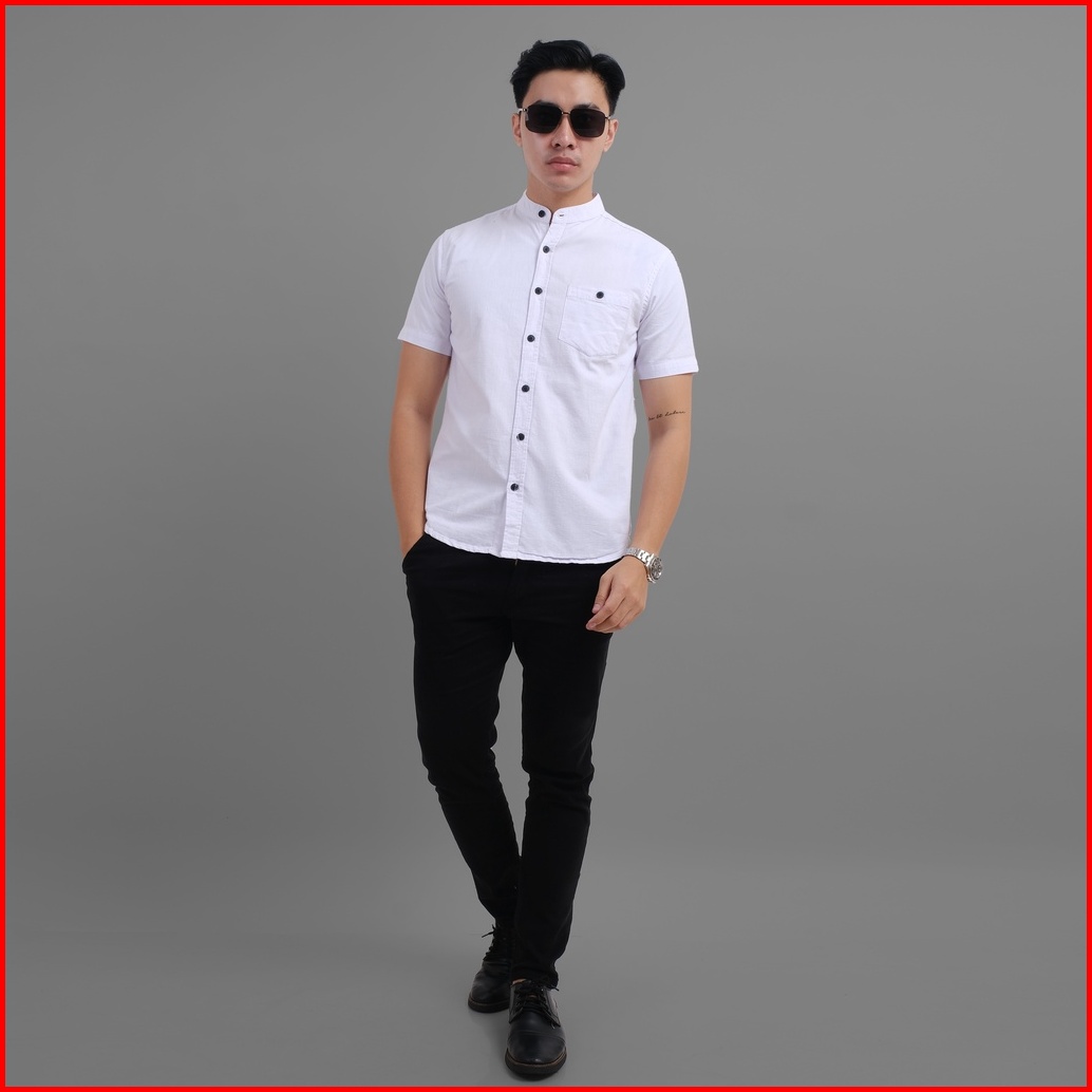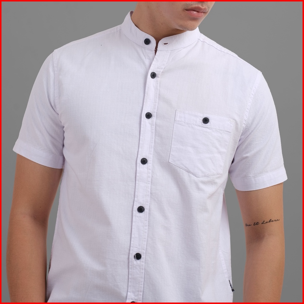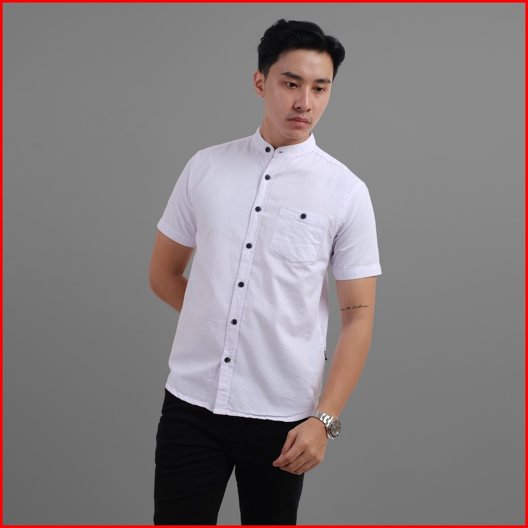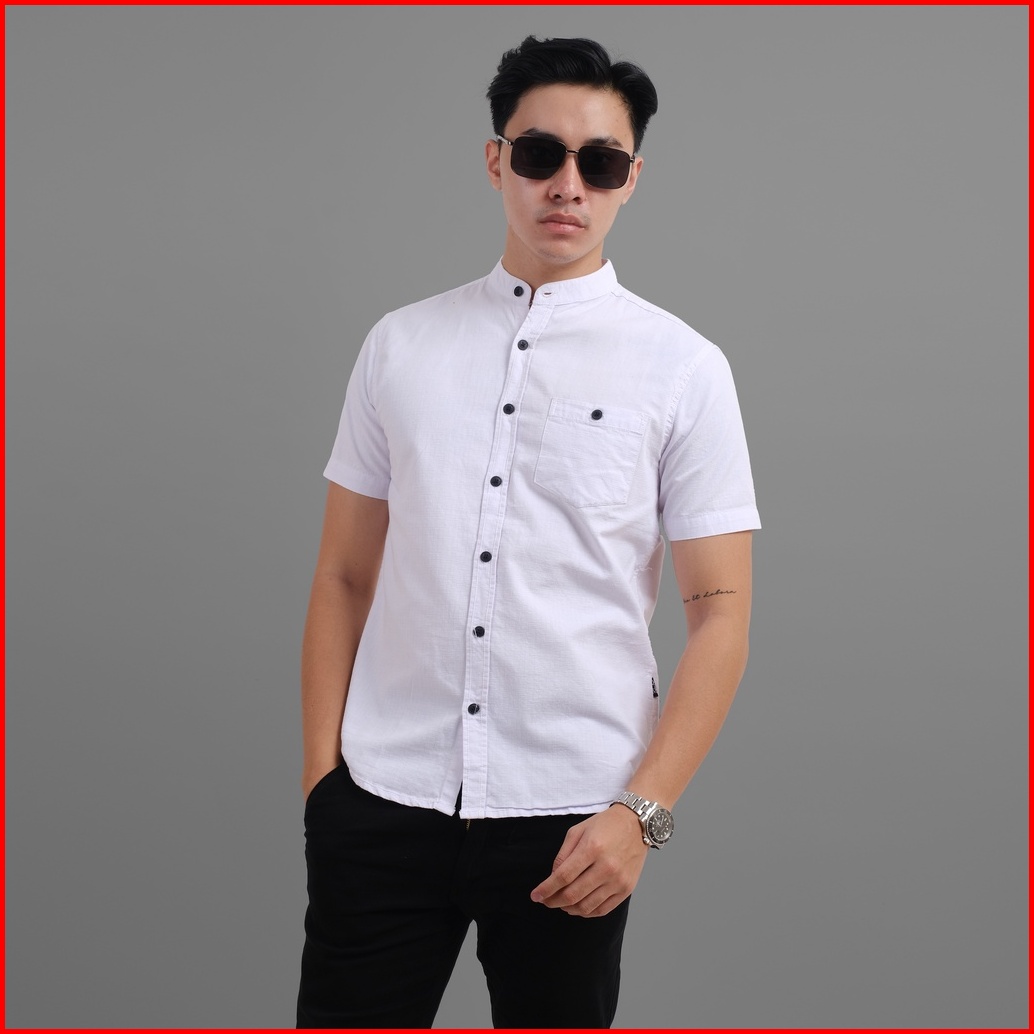 Dgm Kemeja Pria Polos Putih Pendek Putih Kerah Sanghai Koko Premium 1023
