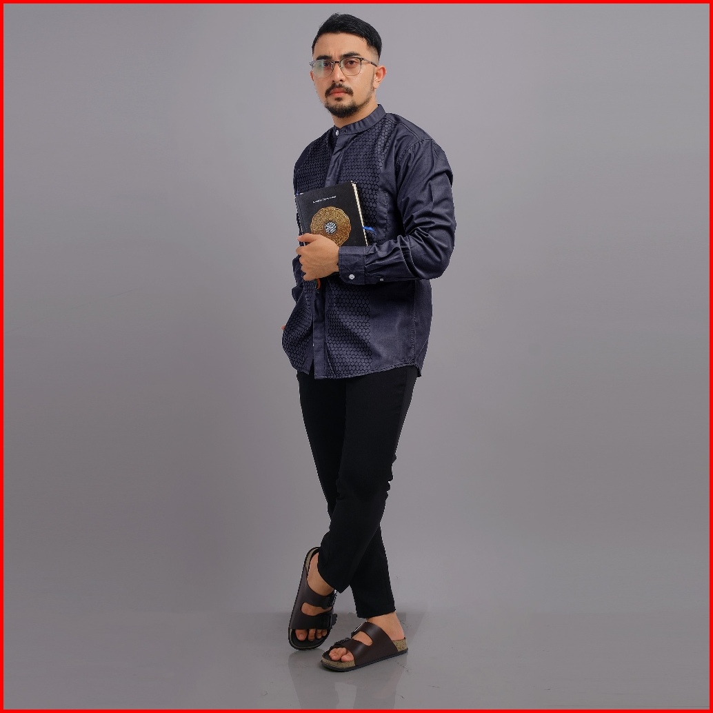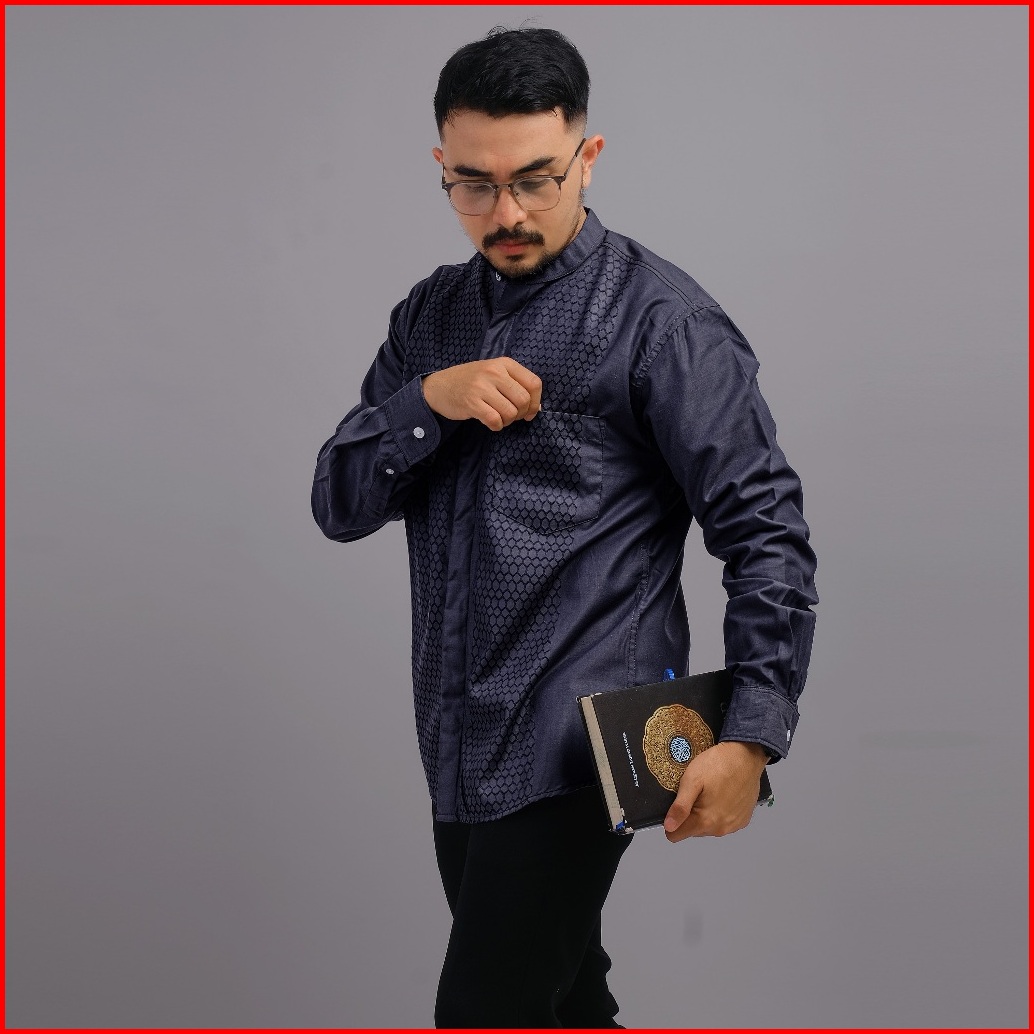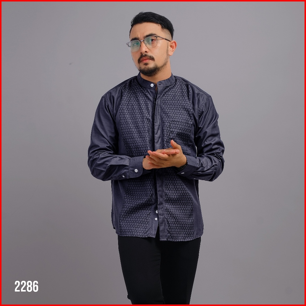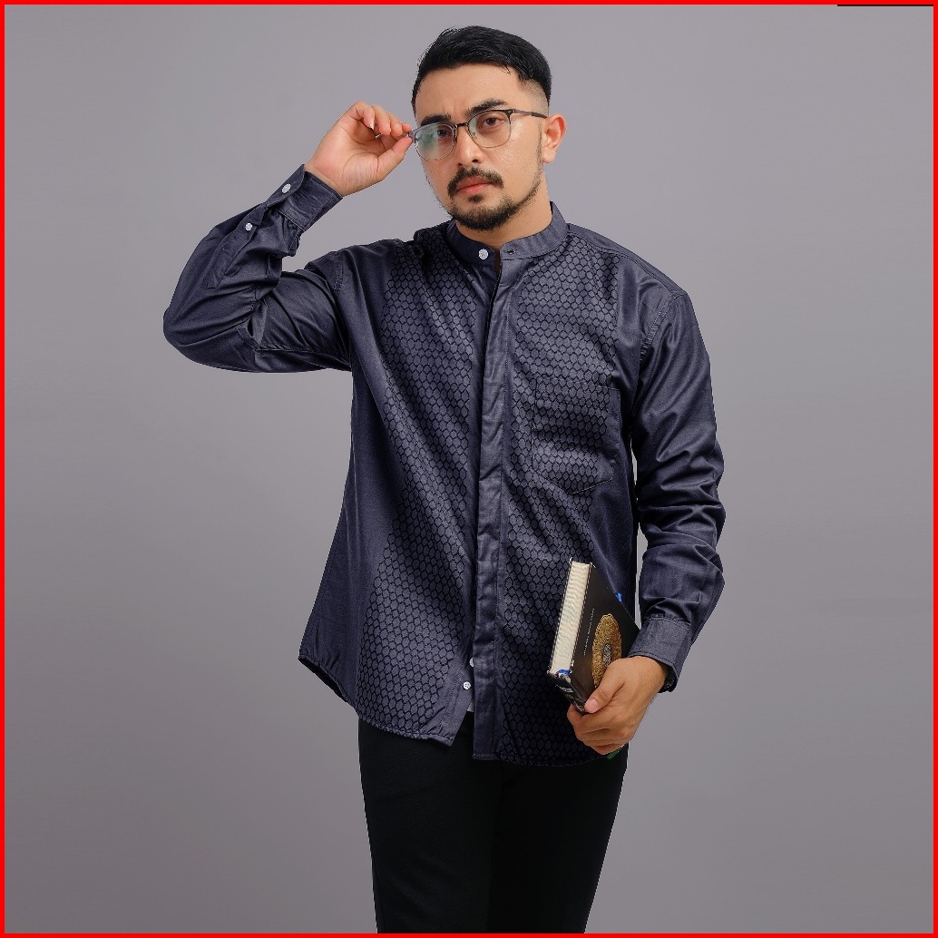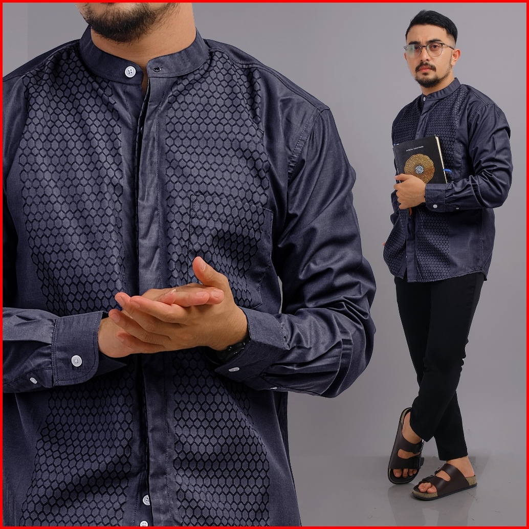Dgm Kemeja Pria Koko Levender Bordir Lengan Panjang Motif Segi Enam 2286