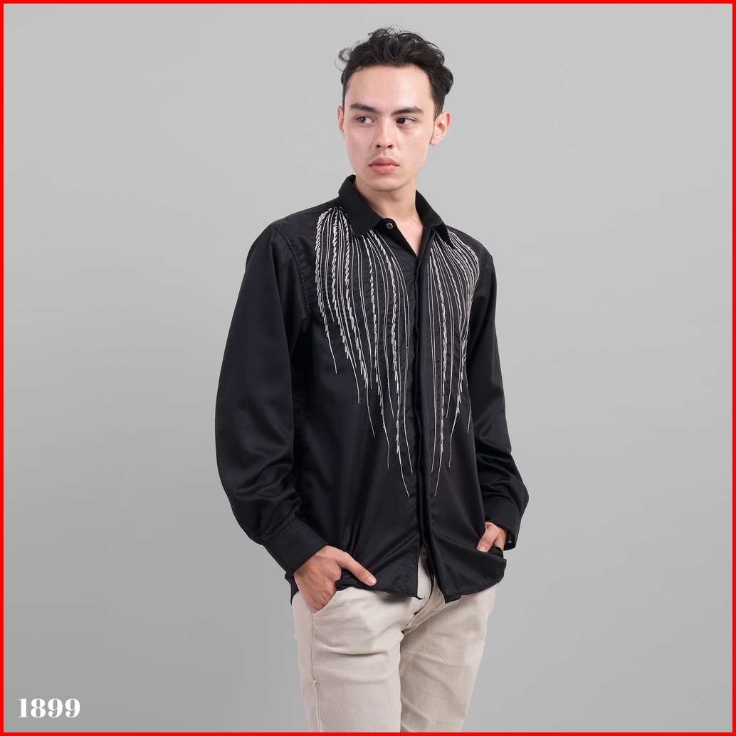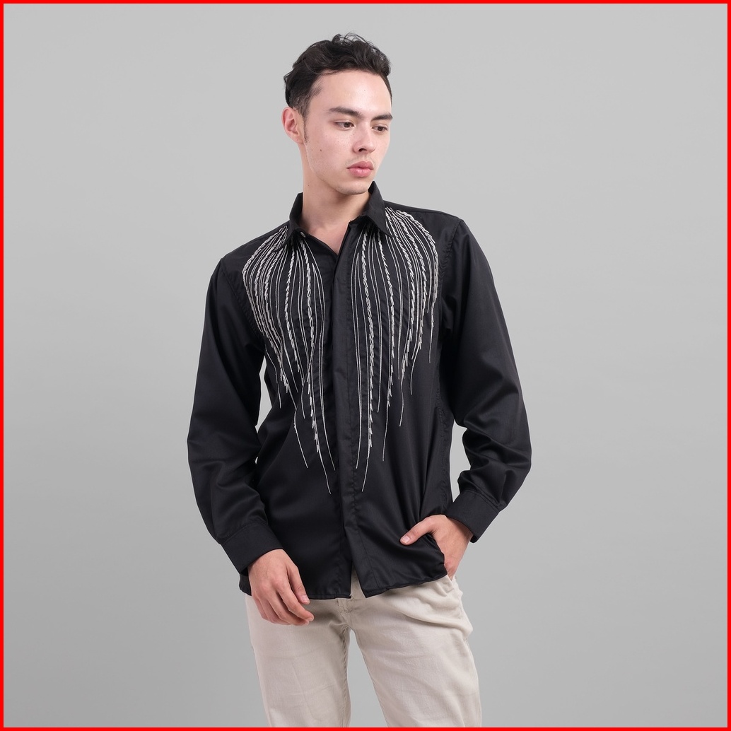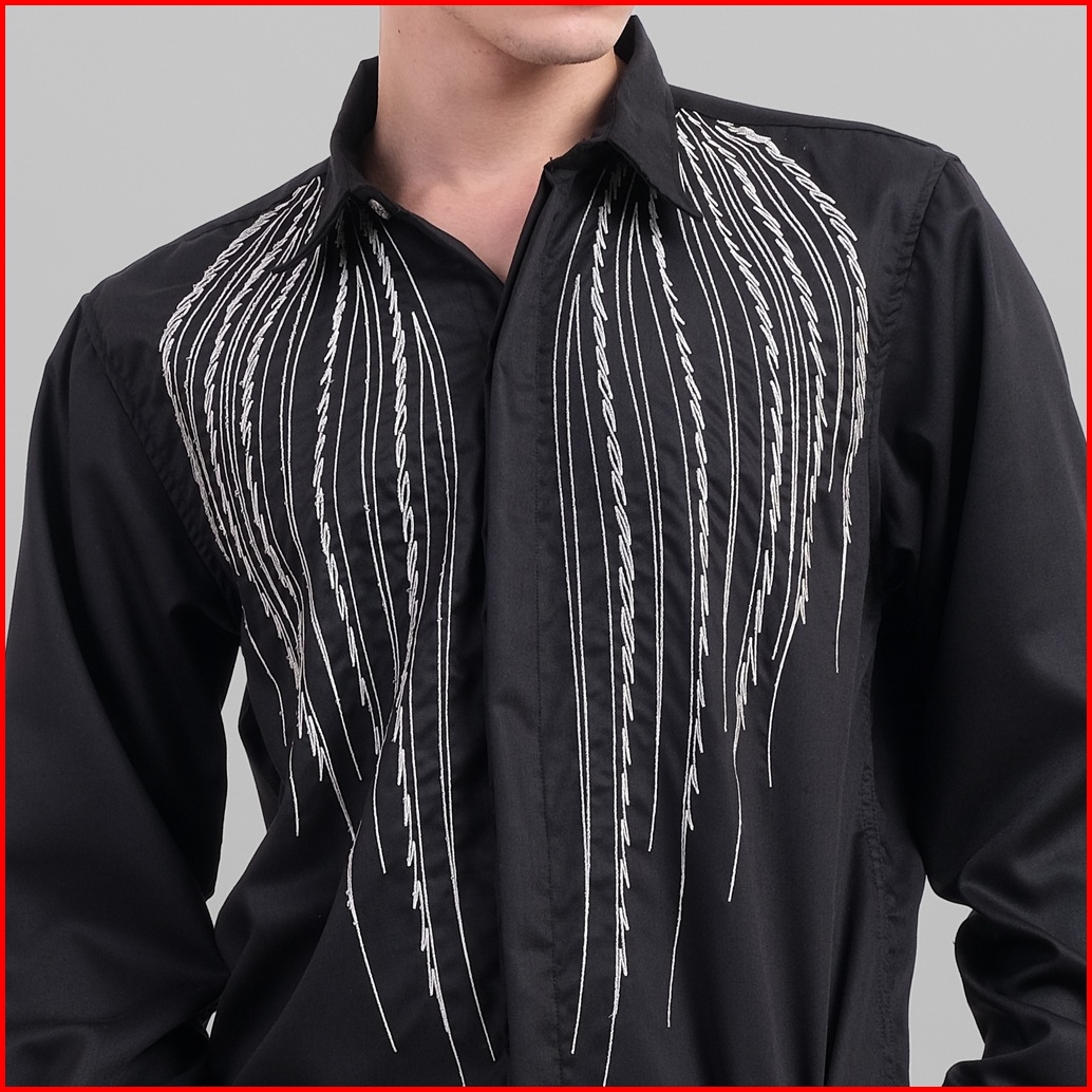 Kemeja Pria Lengan Lanjang Premium Black Bordir Jantung1899
