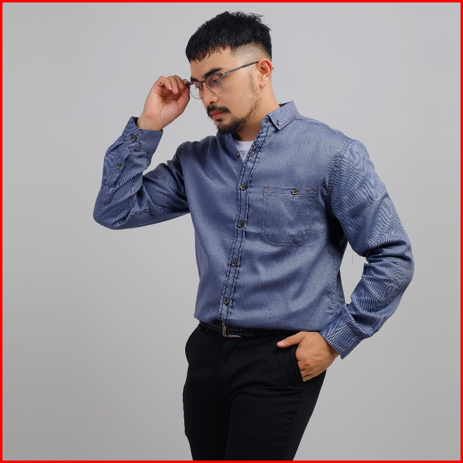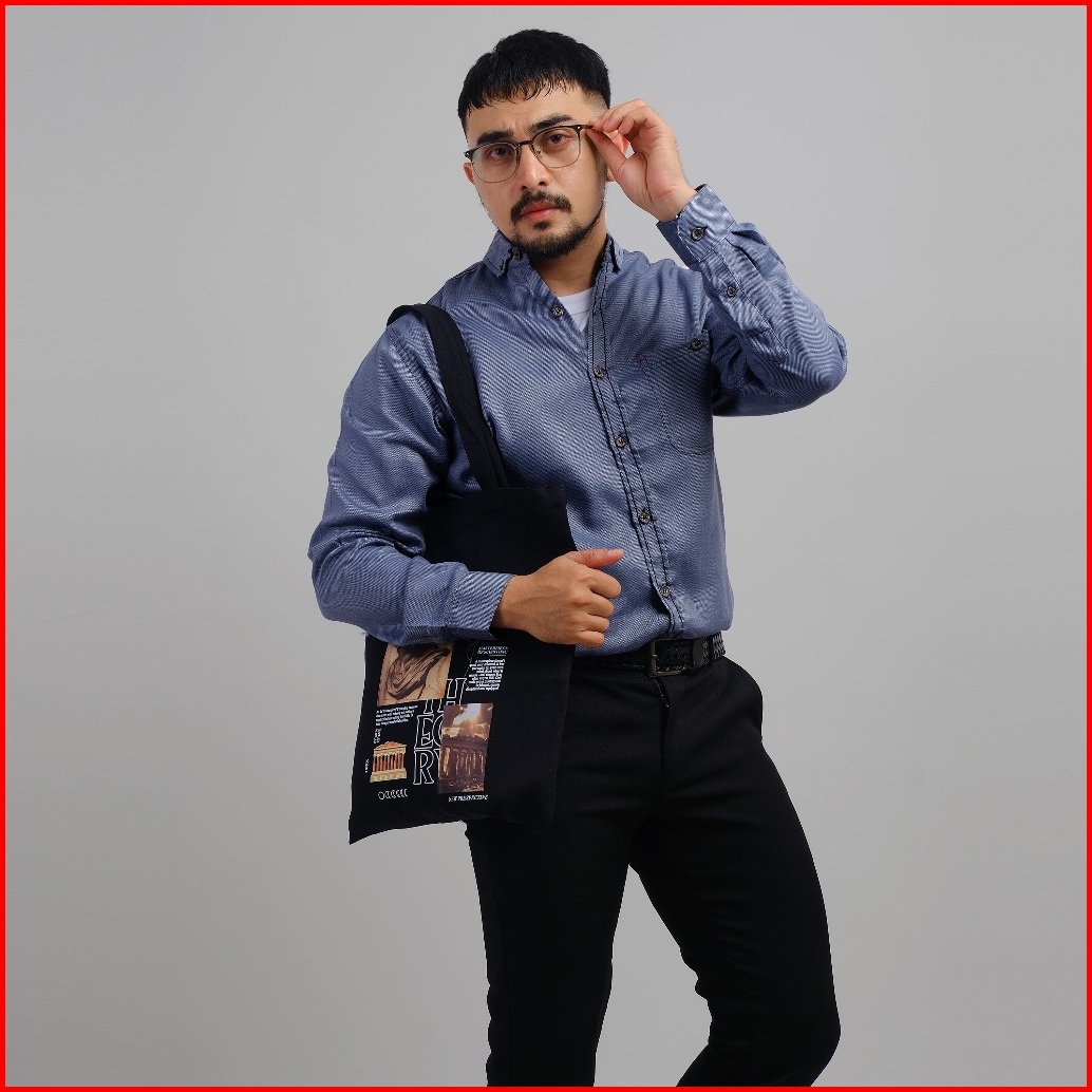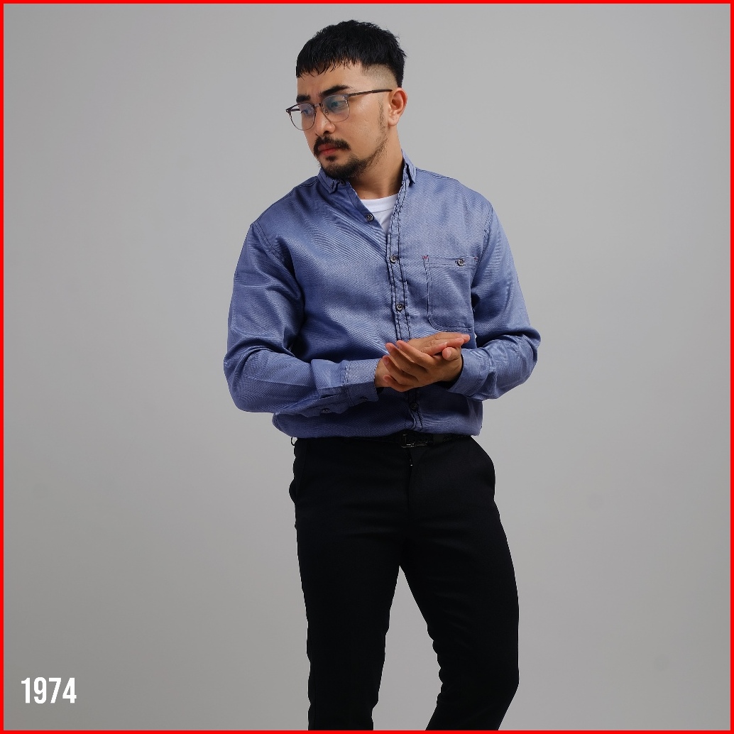 Dgm Kemeja Polos Pria Lengan Panjang Blue 1974