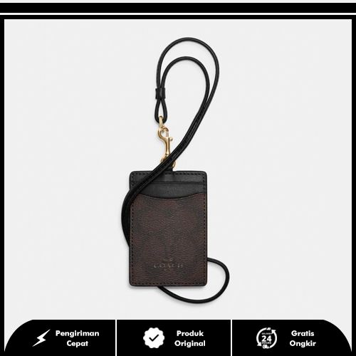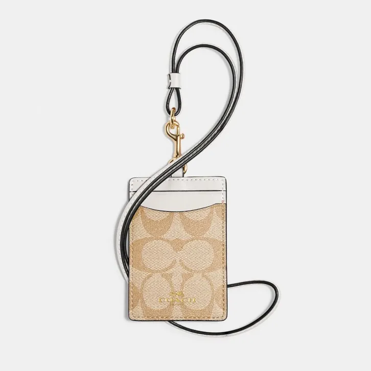 Lanyard ID Coach Wanita Signature Coated Canvas With Leather Details 63274 Official Store