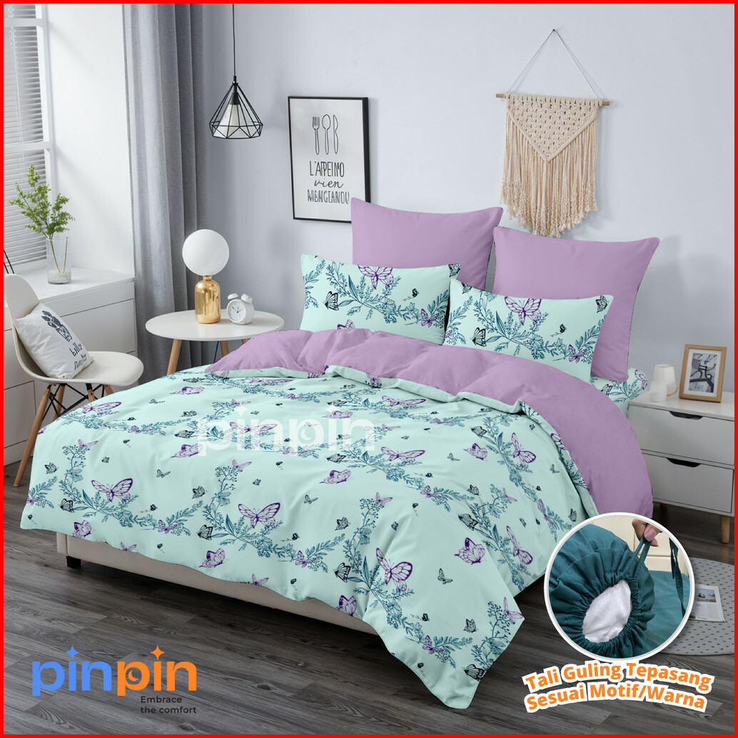 Bed Cover Set Sprei Butterfly Petals Mix Lilac Ukuran Lengkap - Pinpin Bedcover