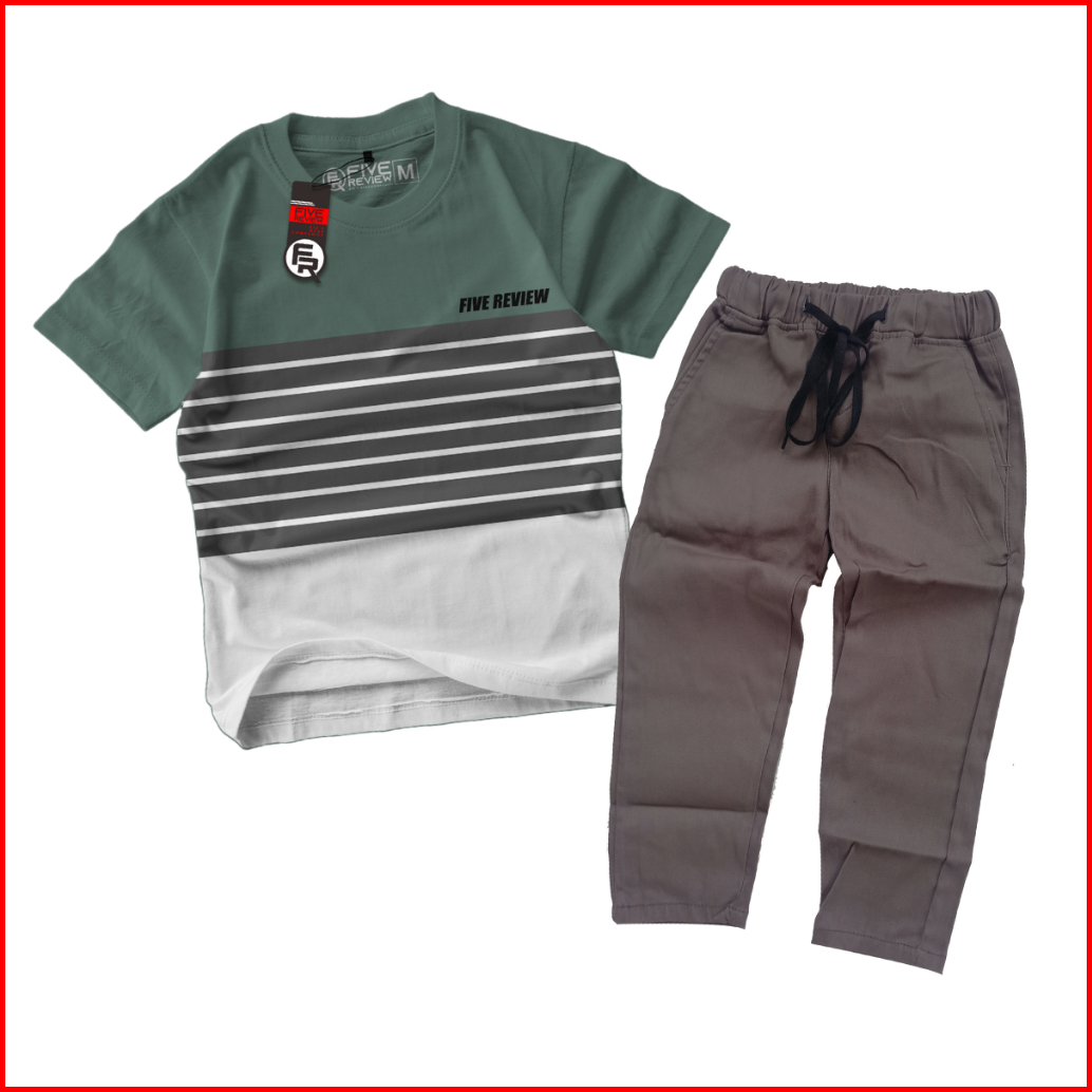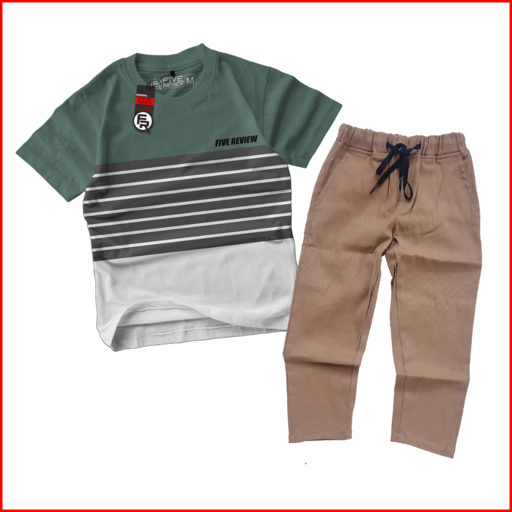 Setelan Anak Laki-laki Usia 4-12 Tahun Celana Panjang Chinos Anak Dan Baju Anak Cowok Bahan Katun