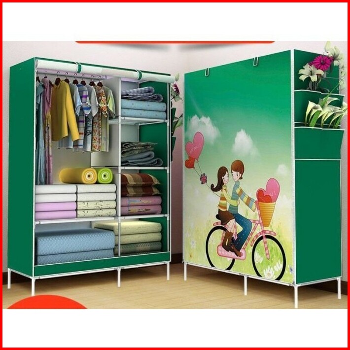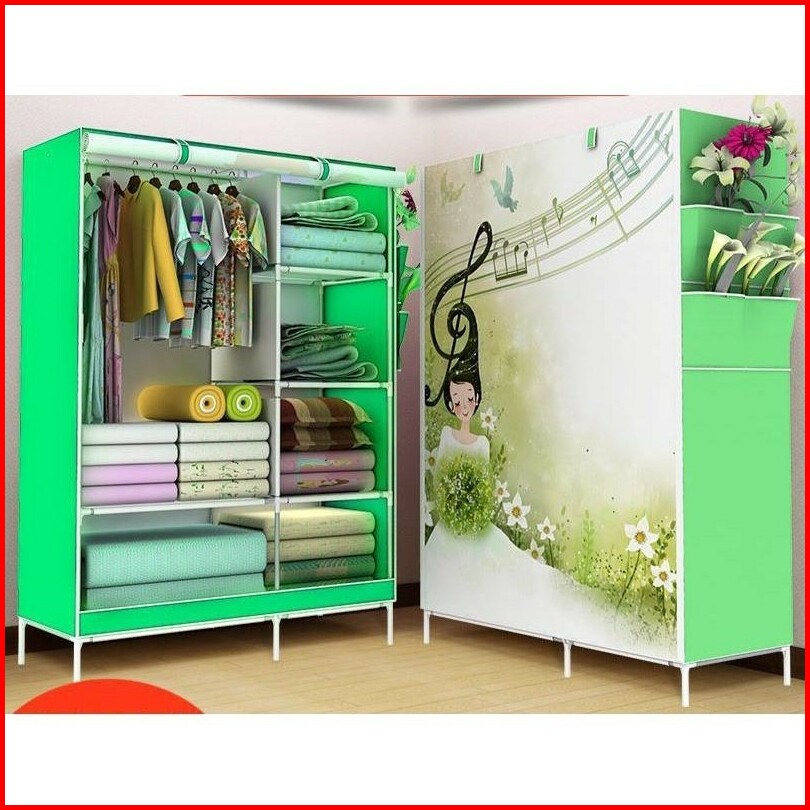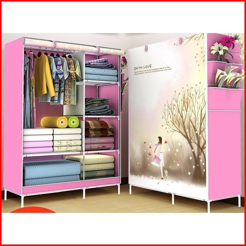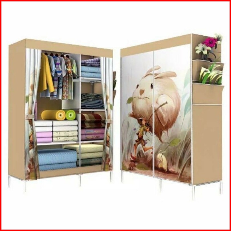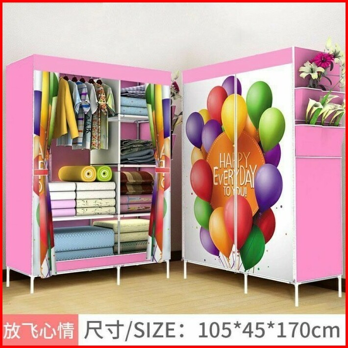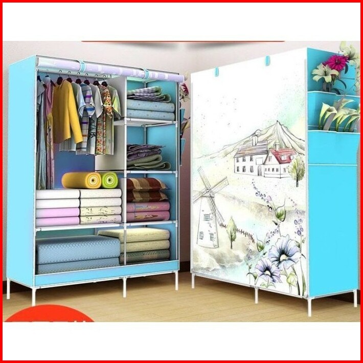 Lemari Pakiaan Serbaguna Lemari Pakian Portable Lemari Pakaian Dewasa Kain Anak-anak Lemari Baju Lebar 105 Cm Buka Sampi