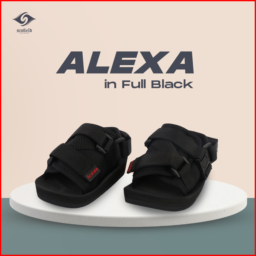 Scofield - Alexa Full Black Sandal Gunung Anak Balita Laki-laki Perempuan Anti Lecet Non-slip Tali Belakang Bisa Dilepas