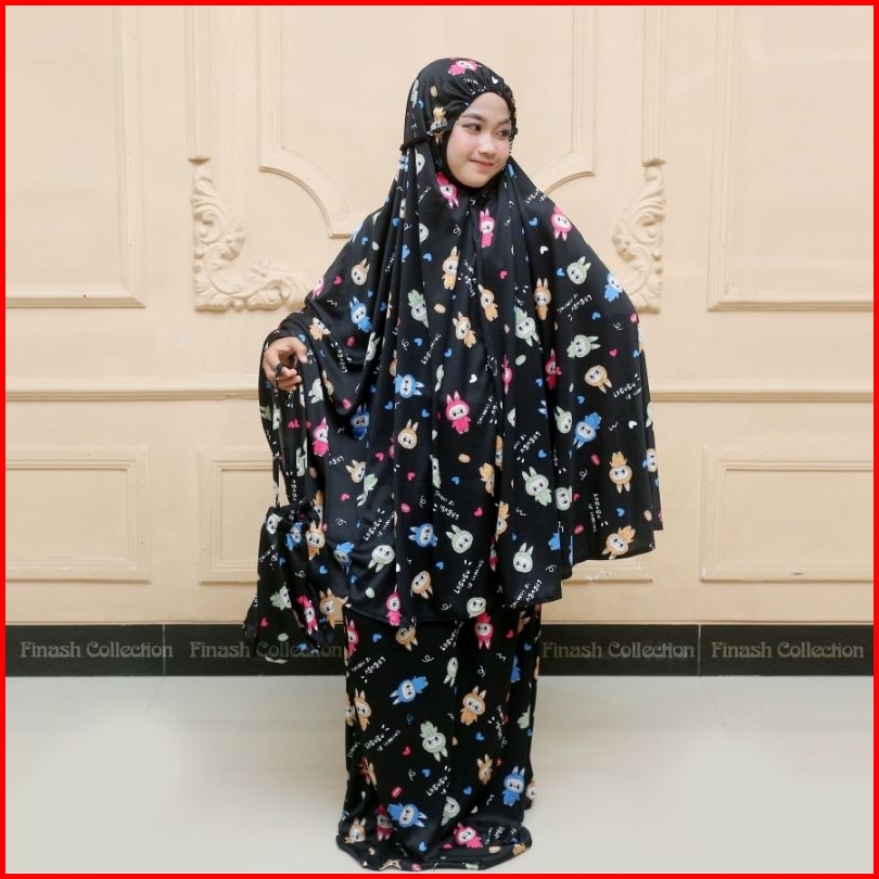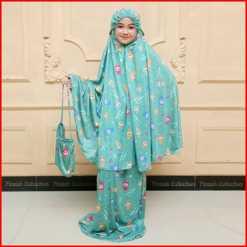 Mukena Terbaru Viral 2025 Anak Tanggung Karakter Labubu Usia 7-15 Tahun Murah Free Tas Travelling
