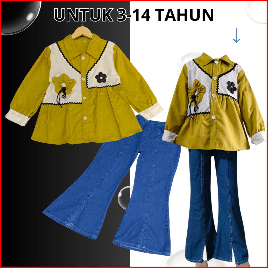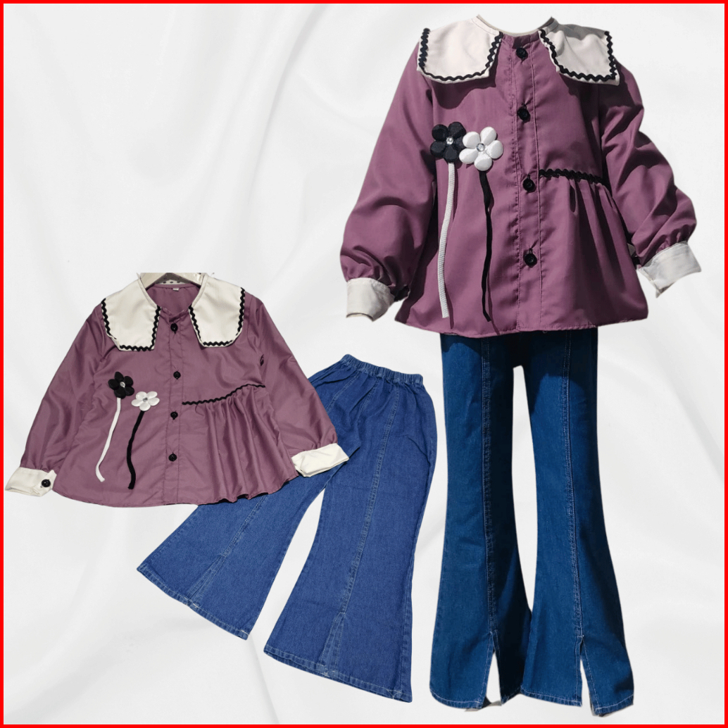 Sakura One Set Baju Anak Perempuan 3-10 Tahun Model Jepang Terbaru Baju Lebaran 2025