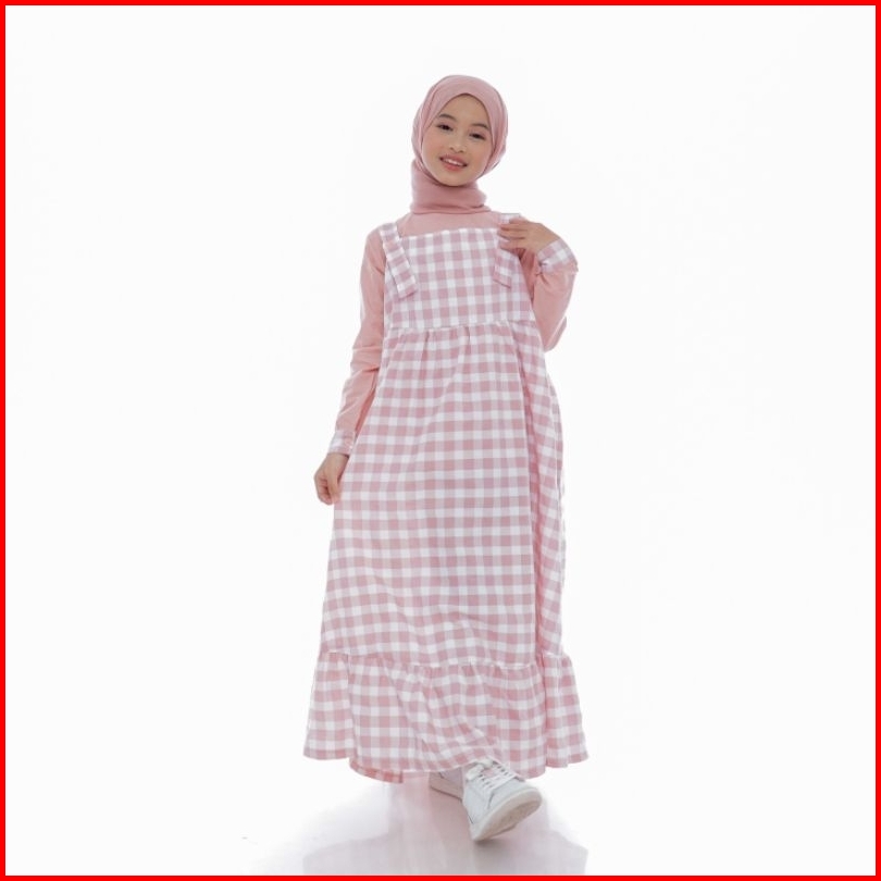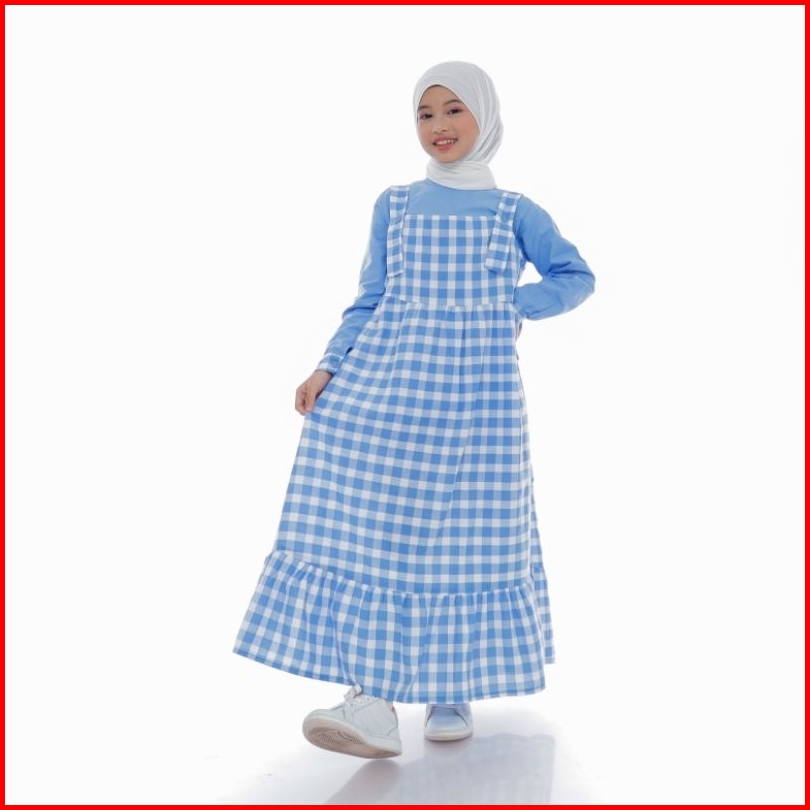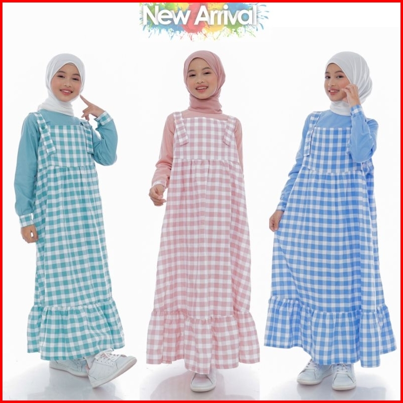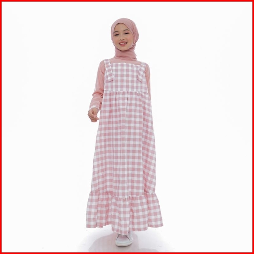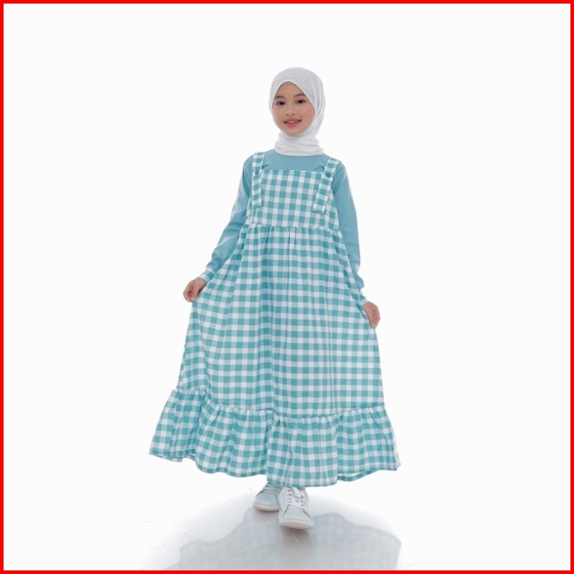 Gamis Overall Anak Perempuan Muslimah Tanggung Dress Lebaran Terbaru Kekinian 2025 Usia 5 Sampai 14 Tahun