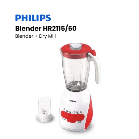 Philips Blender + Dry Mill HR2115 Plastik 2L Low Watt | Belender Phillips 2 Liter