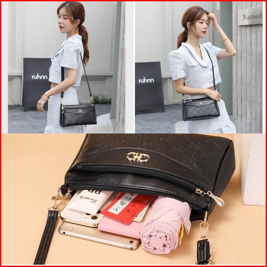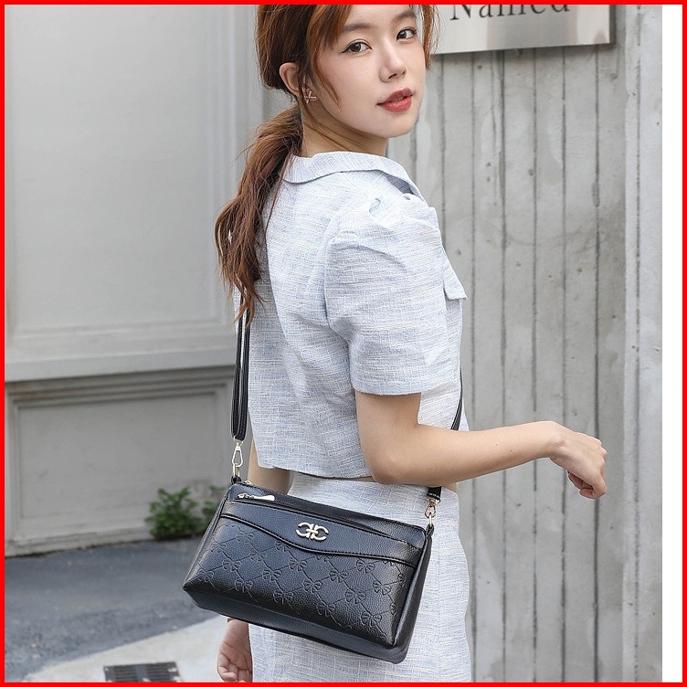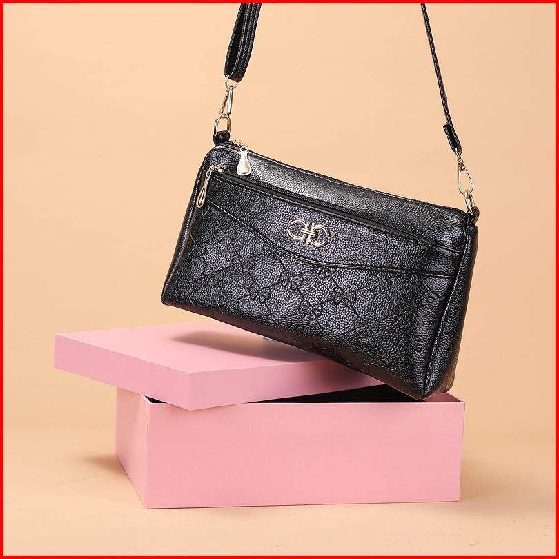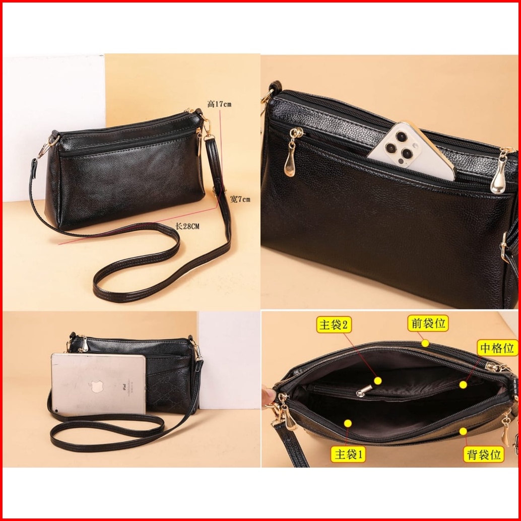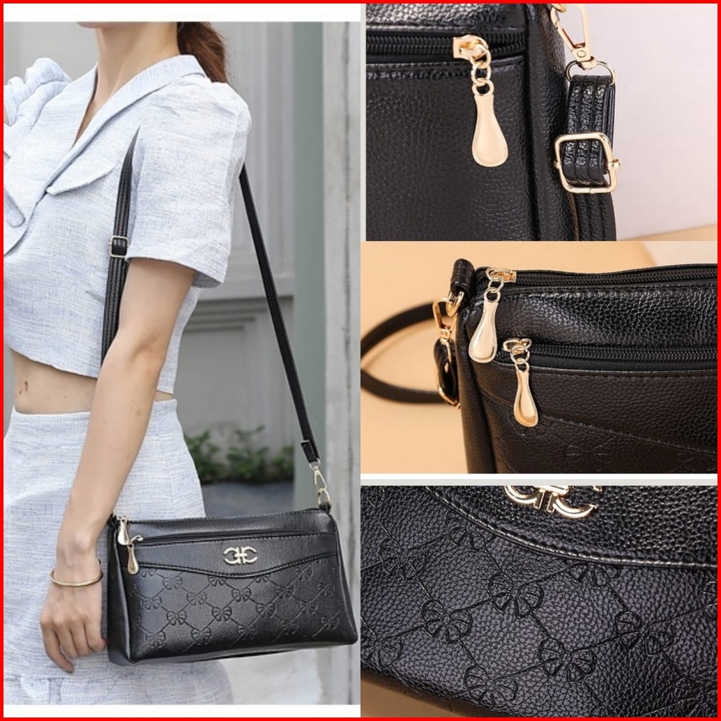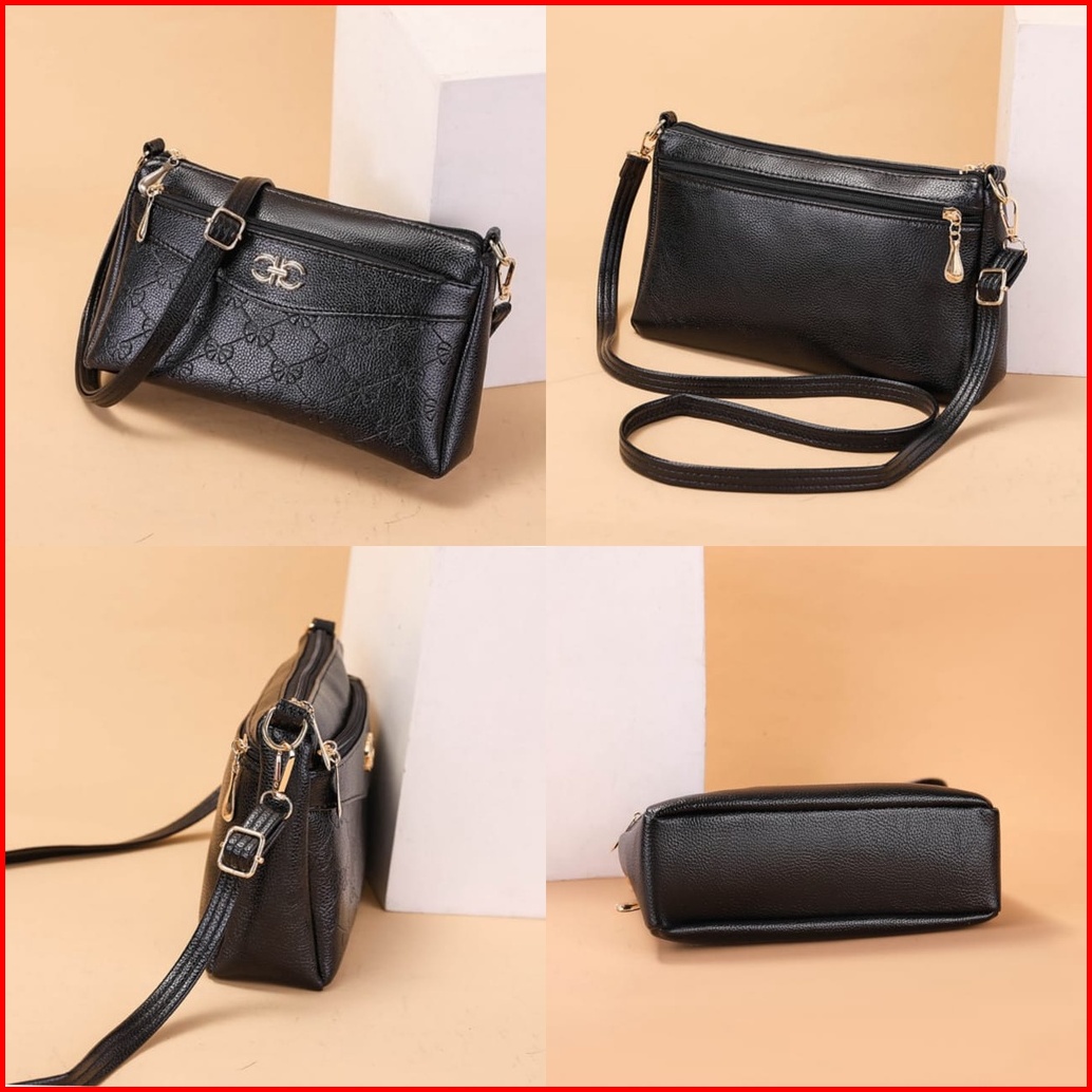 Tas Selempang Wanita Premium Kulit Hitam July Ta421b5 Sling Bag Cewek Korea Remaja Fashion Kekinian Batam Branded