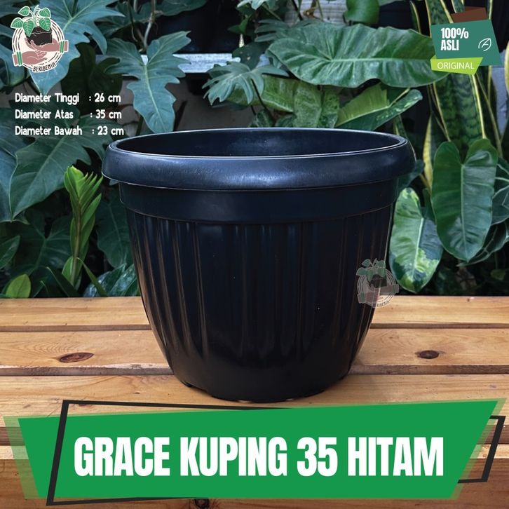 Pot Bunga Plastik Hitam GRACE Kuping Besar Bahan Plastik Kuat Tebal