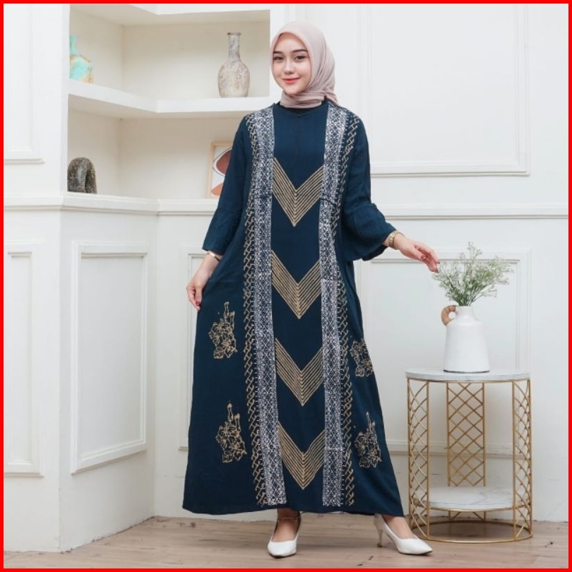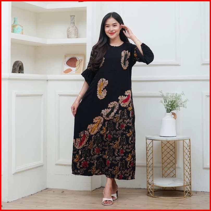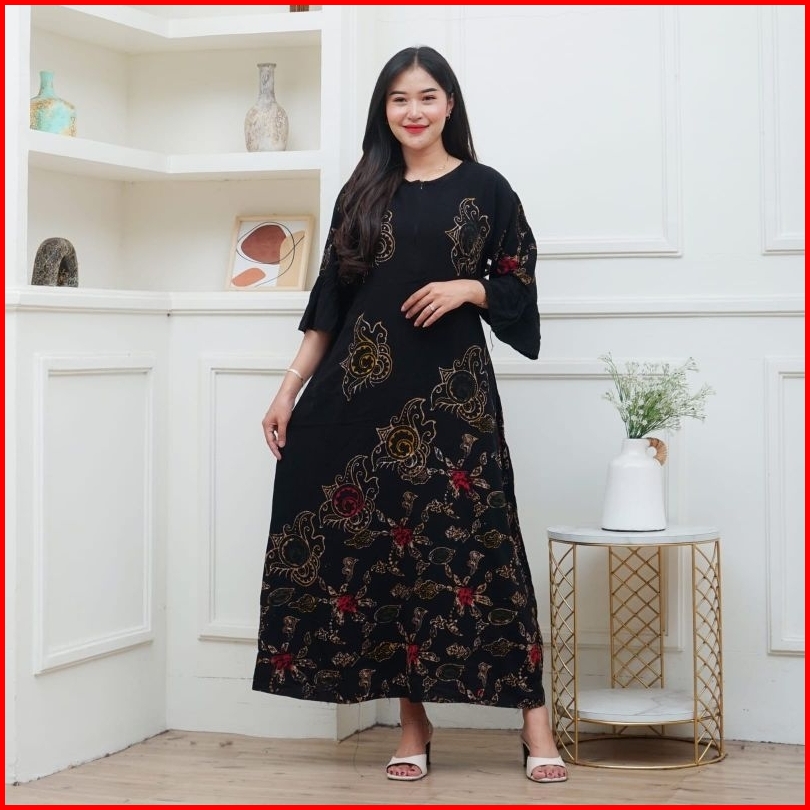 Daster Dress Mis Batik Cap Rayon Tebal Busui Resleting Depan Daster Wanita Lengan