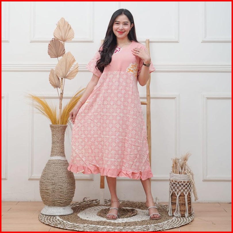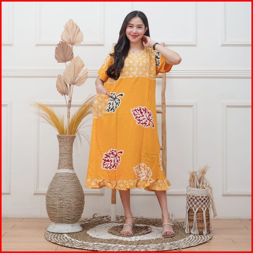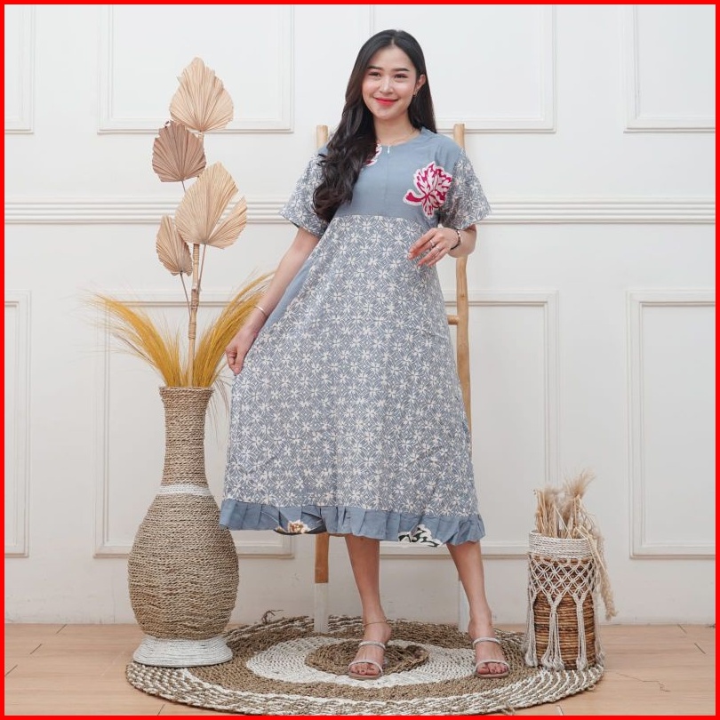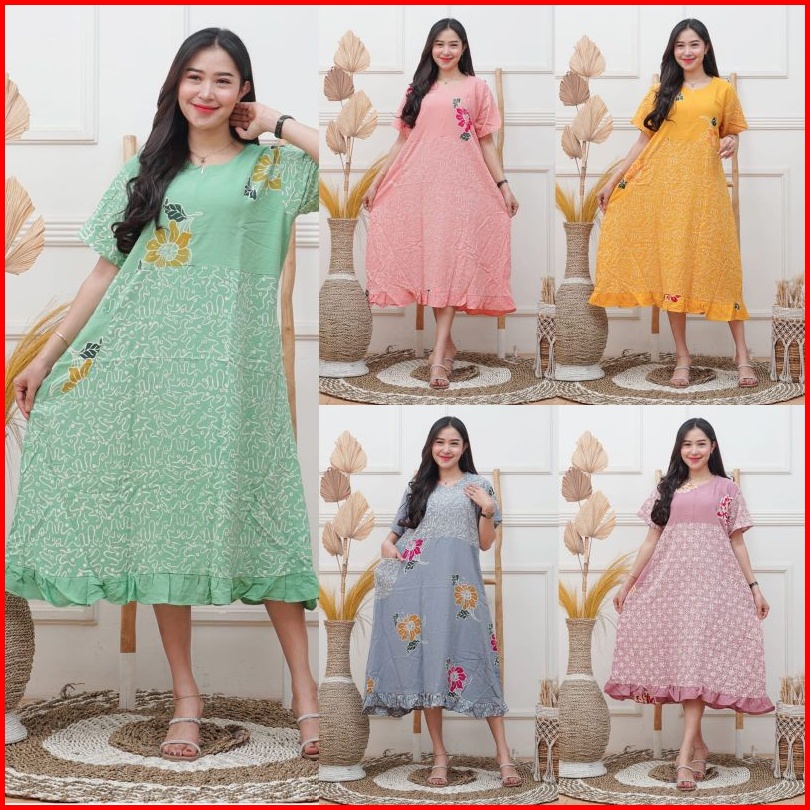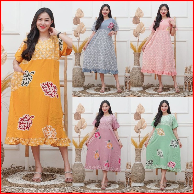 Daster Maura Batik Cap Rayon Grade A Busui Resleting Depan - Baju Tidur Daster - Daster Wanita