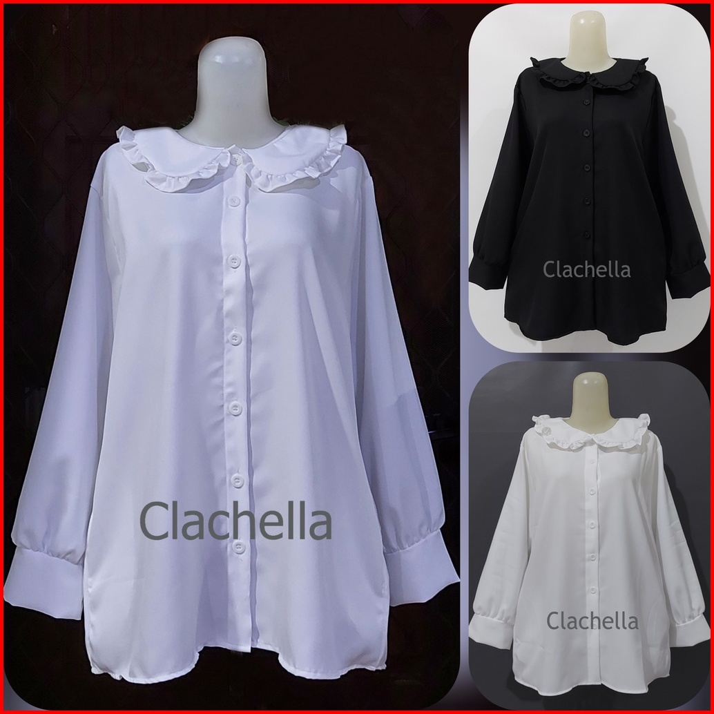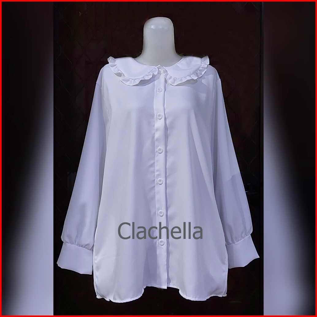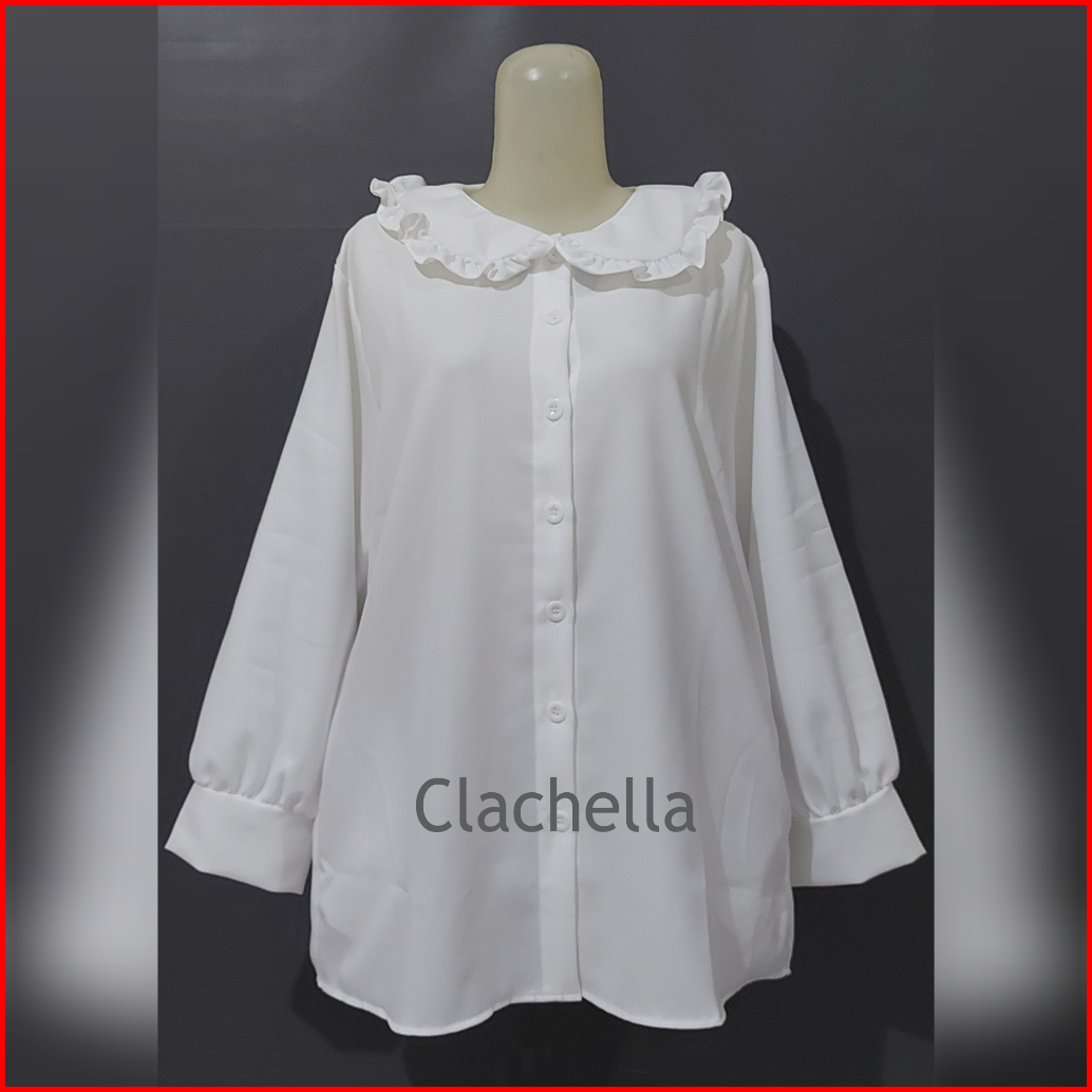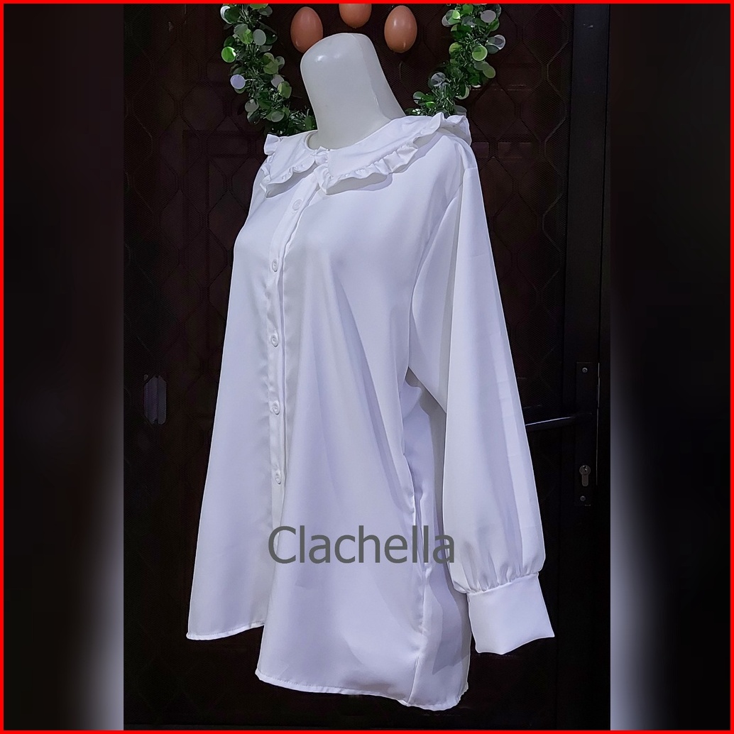 Clachella Baju Atasan Wanita Putih Motif Polos Blus B1b8593