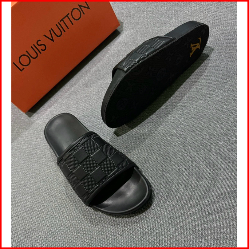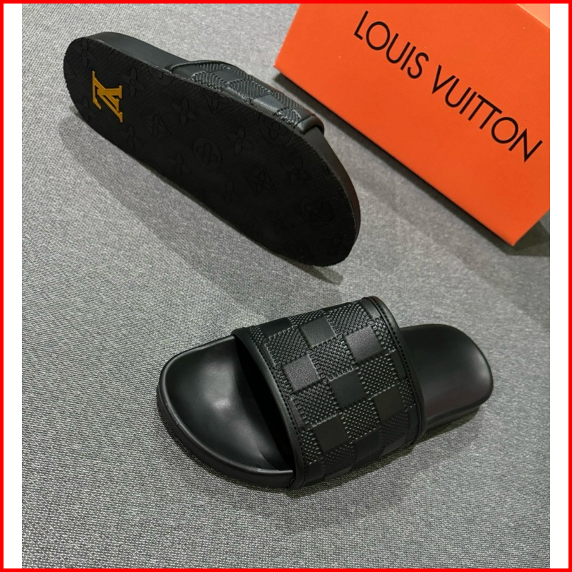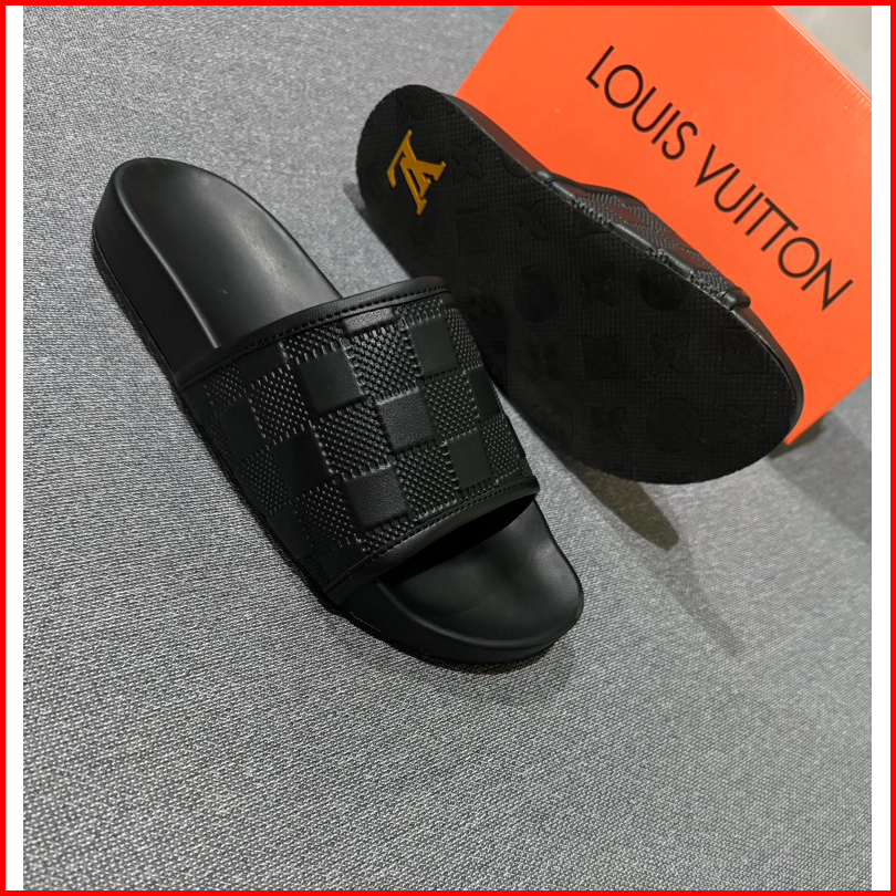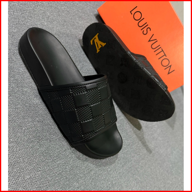 Sandal Slip On Premium Lp Miror Motif Kotak Bintik Embose Full Black Fre Boxs