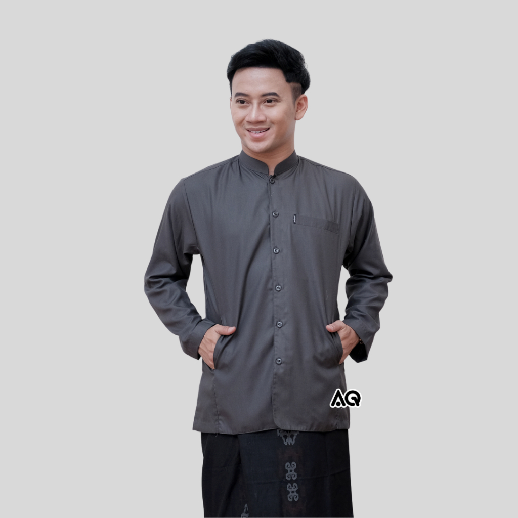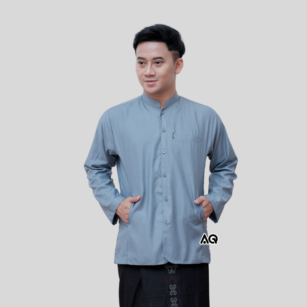 Baju Koko Haibah Semi Jas Lengan Panjang Katun Premium baju koko pria toyobo lengan panjang oblong motif polos
