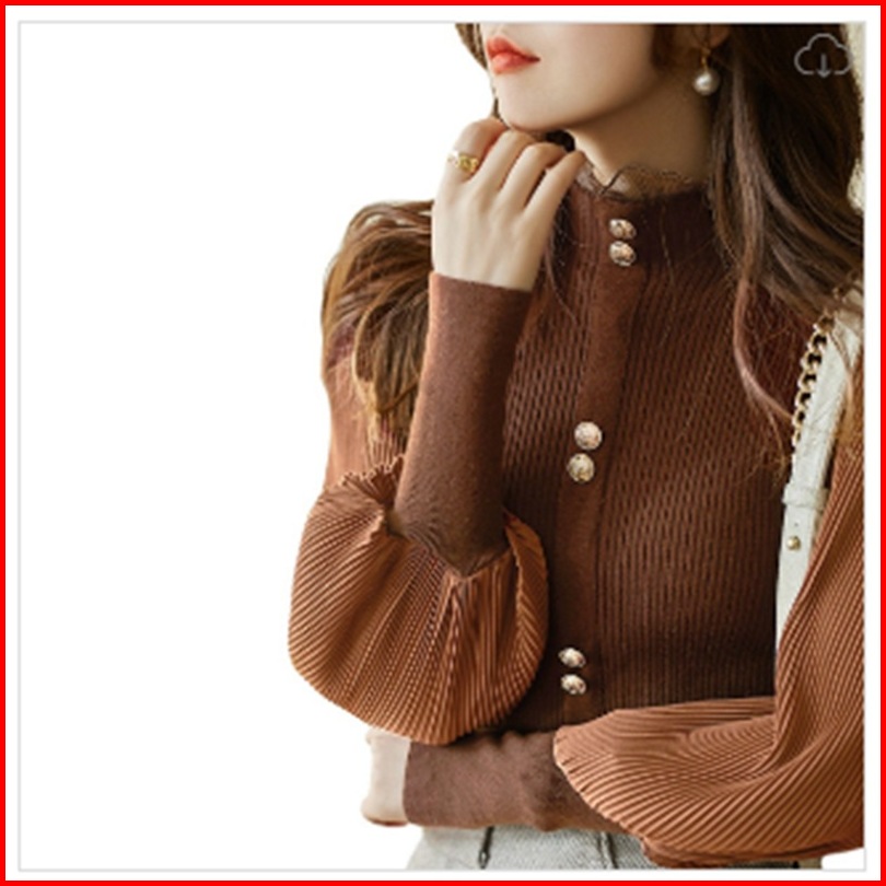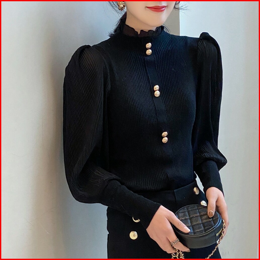 Atasan Rajut Impor Lengan Panjang Mewah Turtleneck Korean Lengan Balon