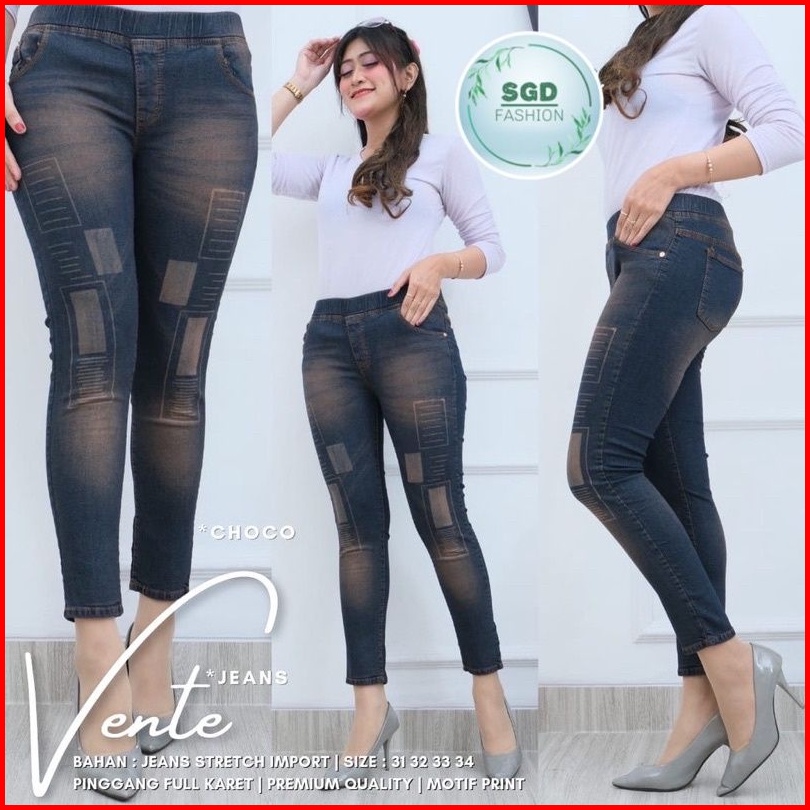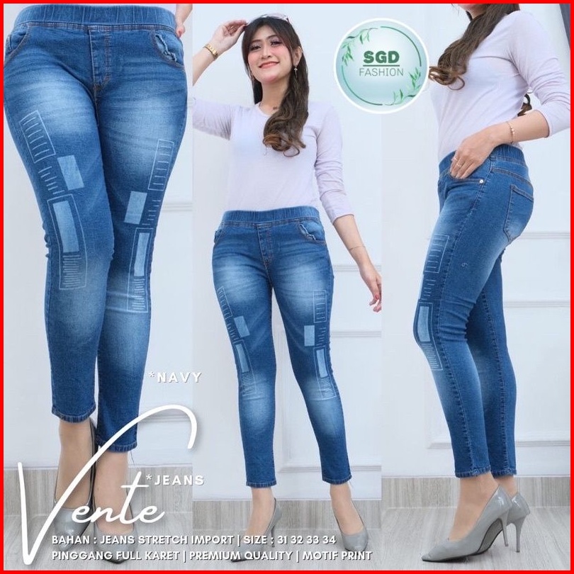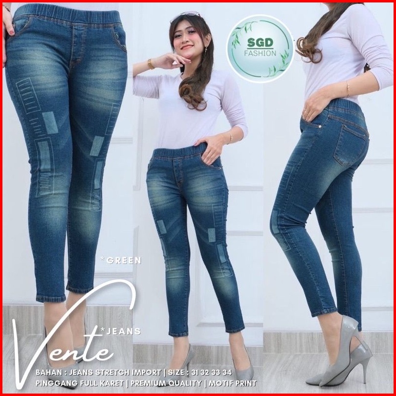 Terbaru Vente Jeans Sablon Bahan Melar Pinggang Fullkaret.denai Jegging Jeans Sablon.lesty Jegging Jeans Sablon