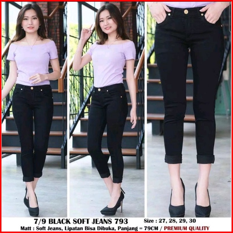 Celana Jeans Wanita 7 9 Size 27-34 Jumbo Jeans Mulur Strict