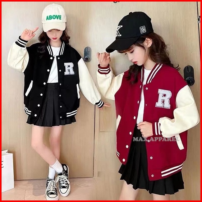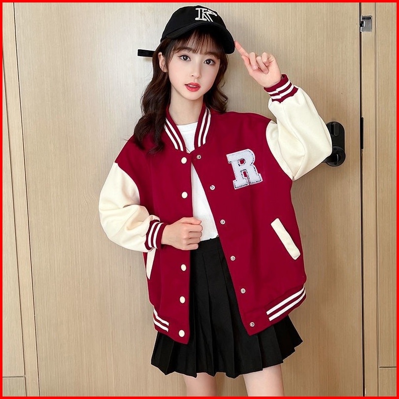 Bomber Baseball Varsity Jaket Unisex Anak Kecil Remaja Perempuan Laki Laki Pria Wanita Cowok Cewek Sekolah Paud Tk Sd Sm