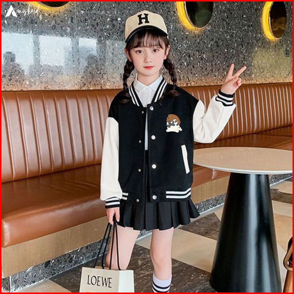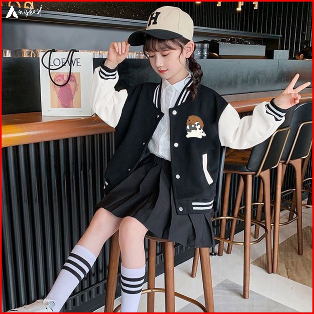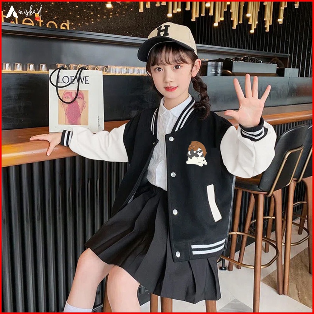 Jaket Anak Baseball Varsity Original Terbaru Umur 1 2 3 4 5 6 7 8 9 10 11 12 13 14 15 16 Tahun Hitam Putih We Bare Bears