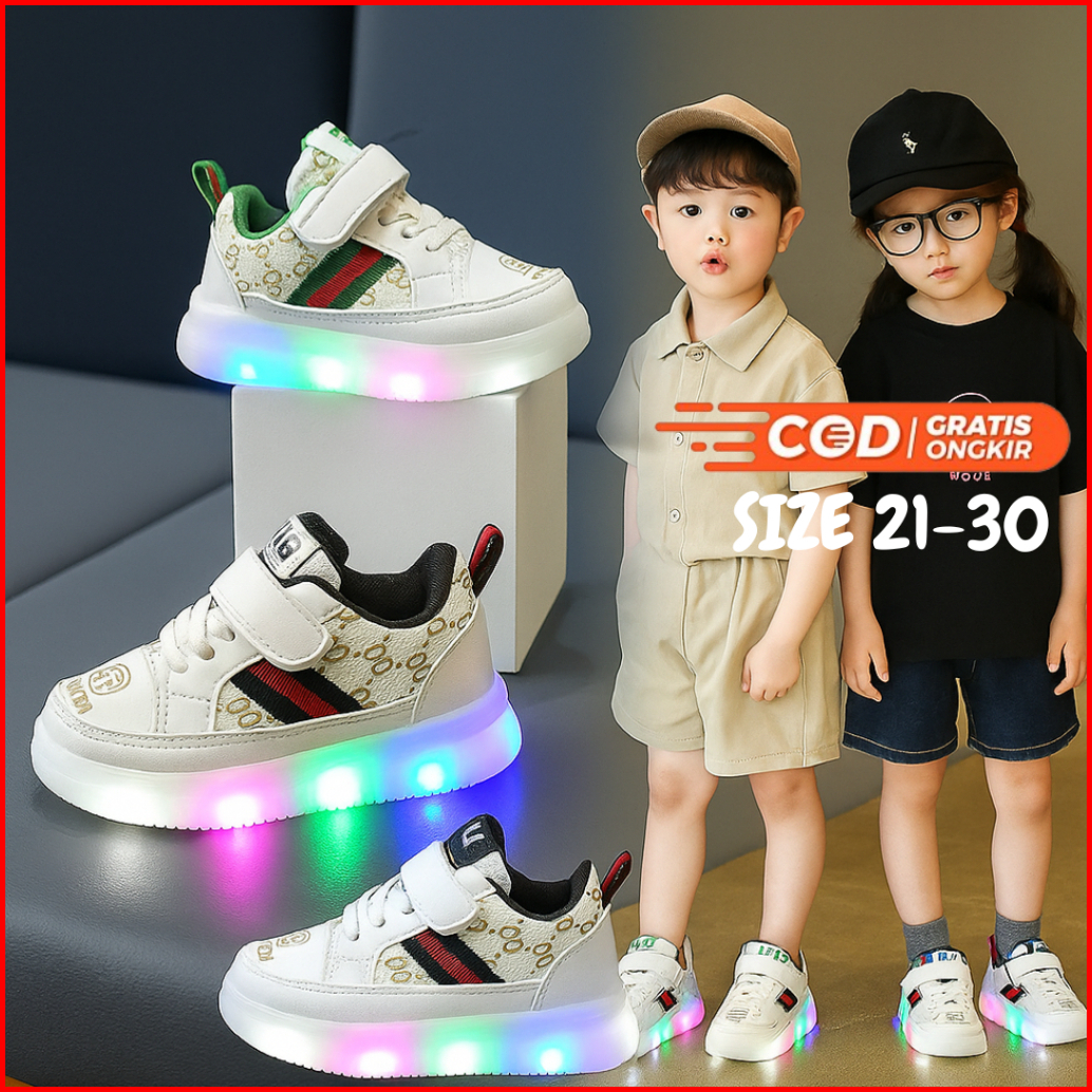 Sepatu Anak Laki Laki Perempuan Led Nyala Glorykidz Sh2358 Size 21-30 Ringan Stylish Import