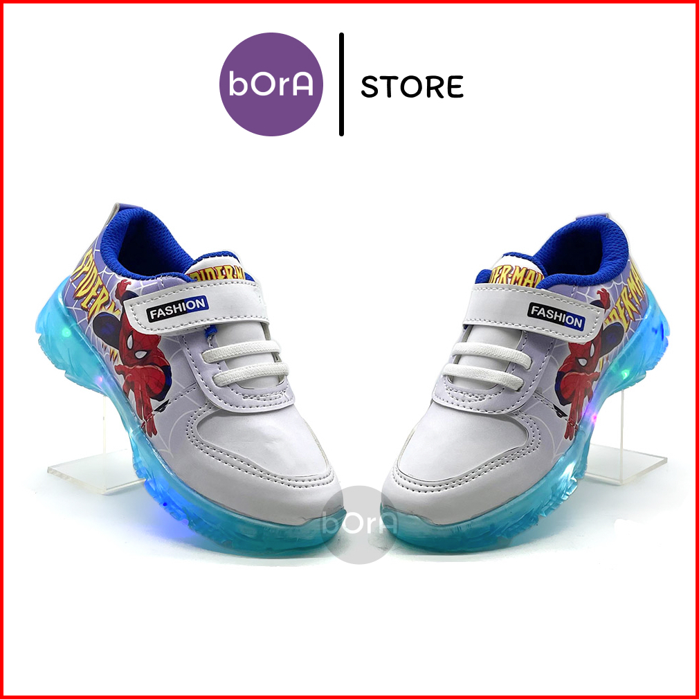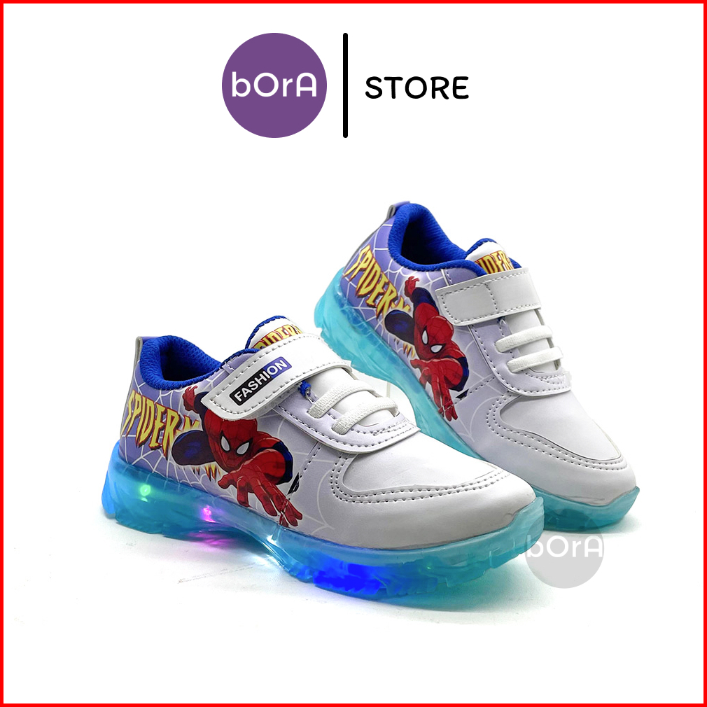 Sepatu Sneakers Anak Laki-laki Spiderman Terbaru Gradasi Led Menyala Keren Ukuran 24-32