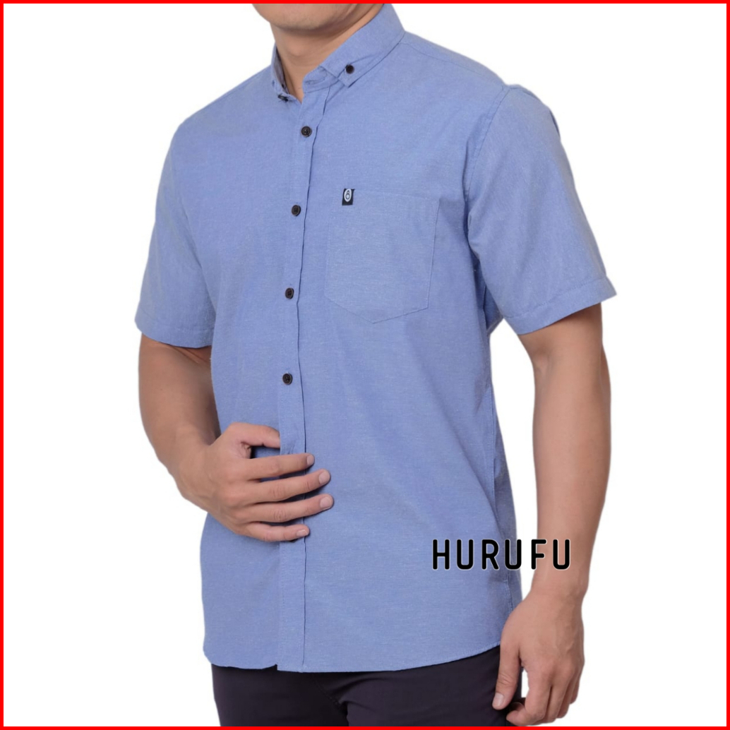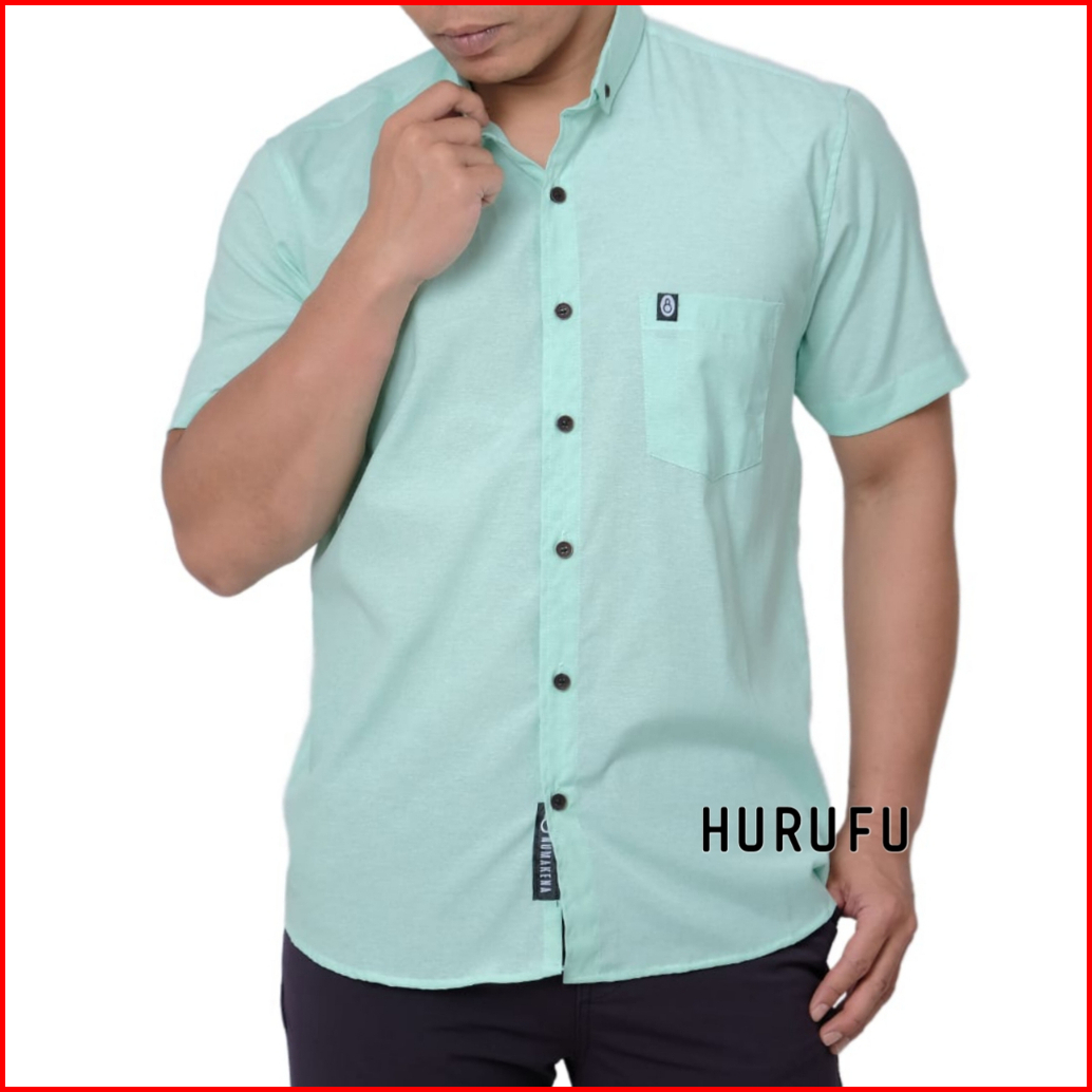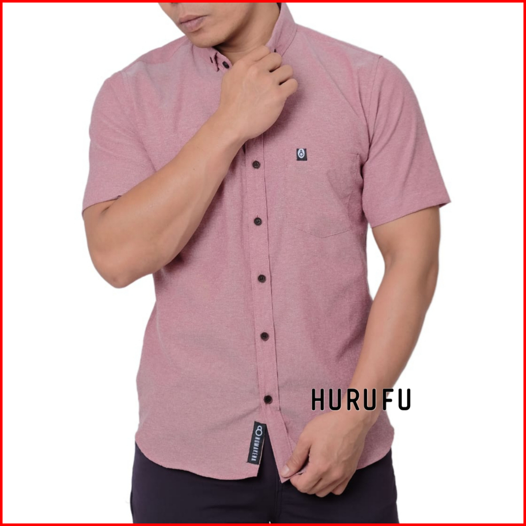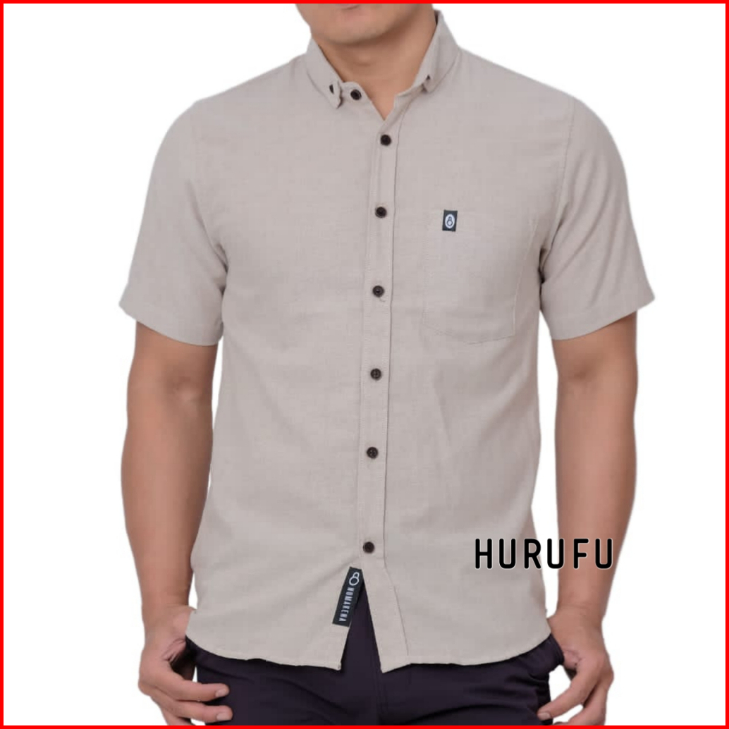 Hurufu Kemeja Pendek Motif Polos Kasual Atasan Pria