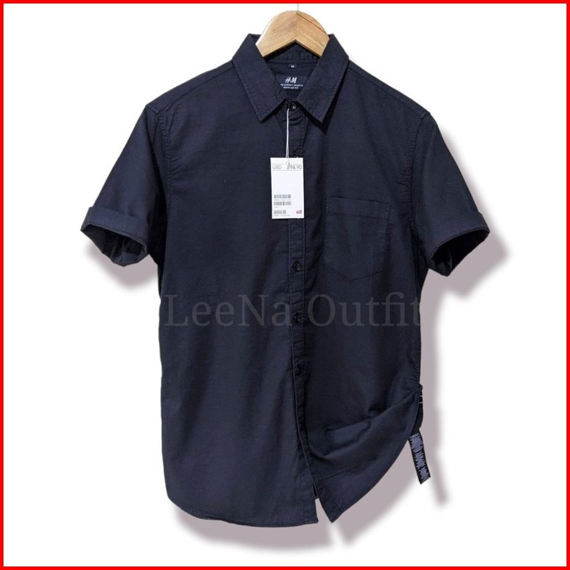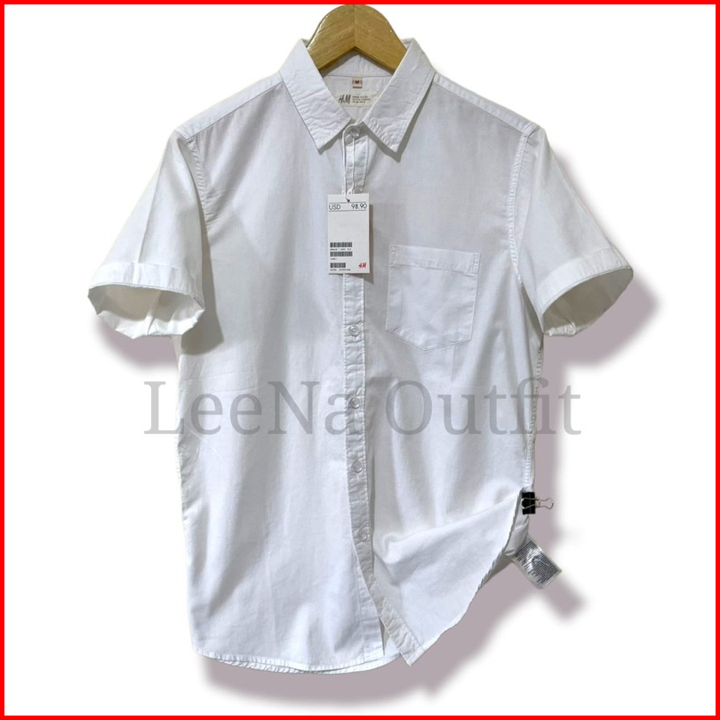 Kemeja Pendek Kerah Pria Hm Putih Soft Twill Katun Premium