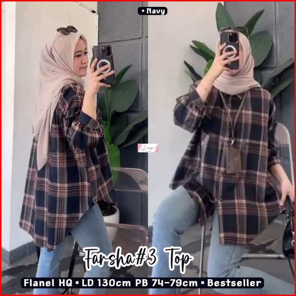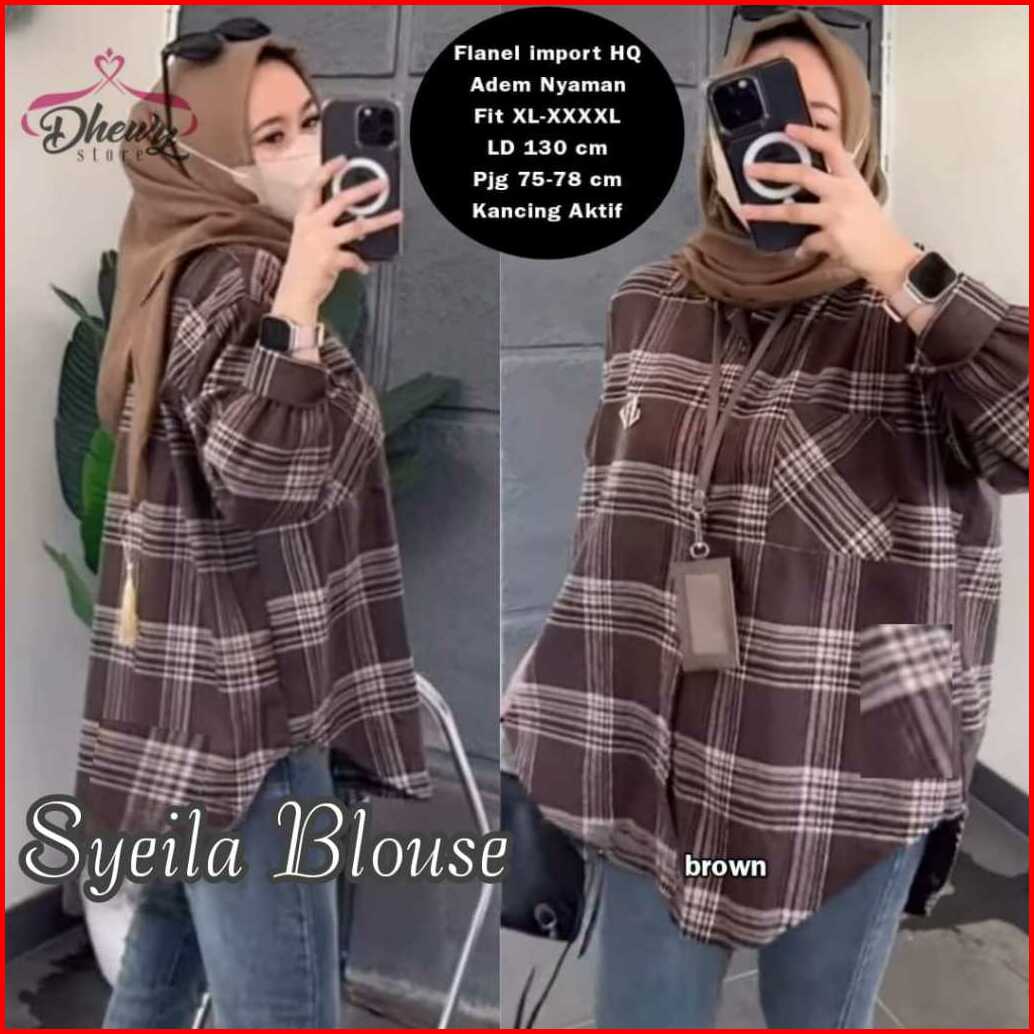 Blouse Kemeja Wanita Jumbo Ld 130 Katun Flanel Premium Motif Kotak Kotak Terbaru Pakaian Wanita Baju Atasan Lengan Panja