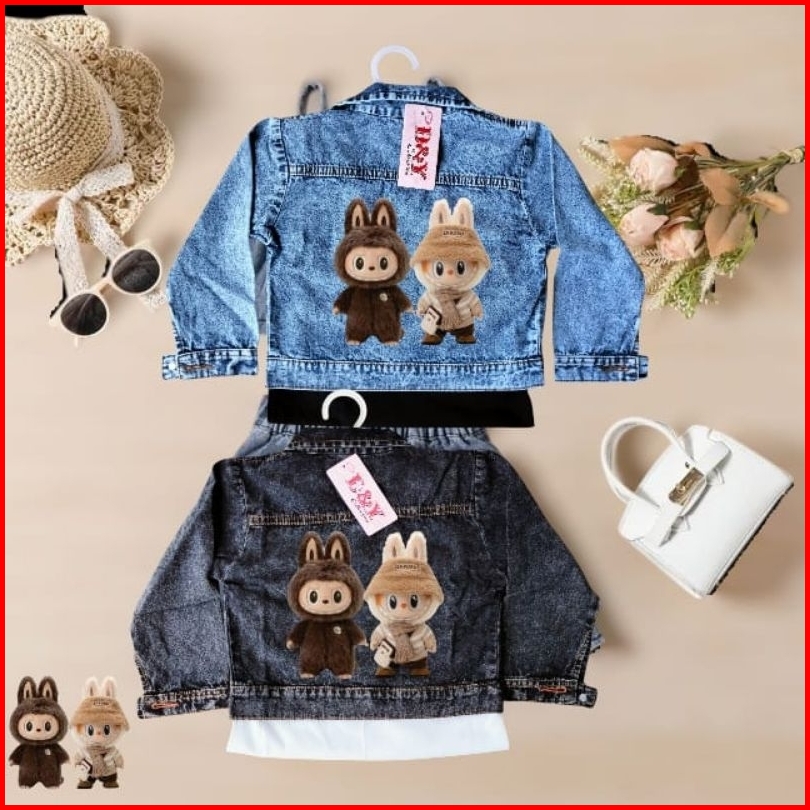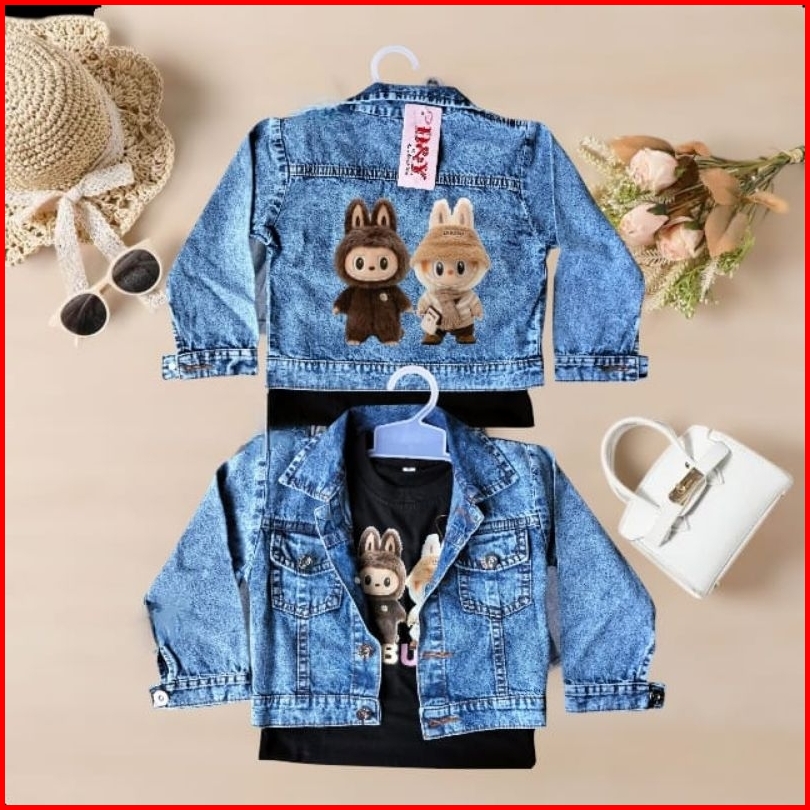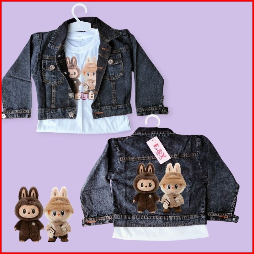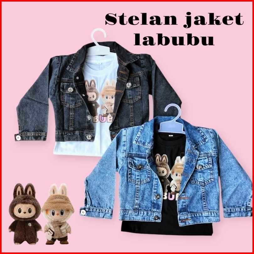 Stelan Jaket Jeans Anak Dan Kaos Labubu Usia 1-8tahun
