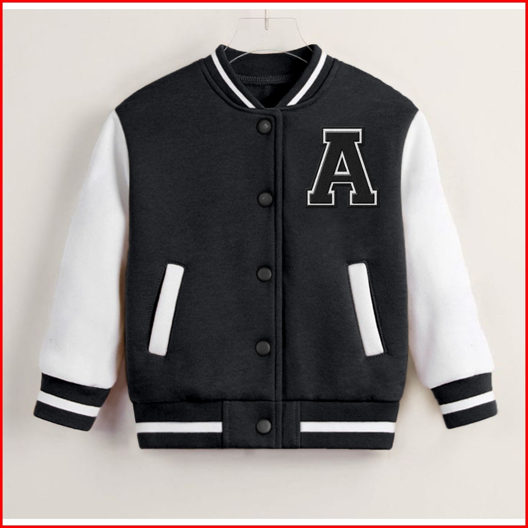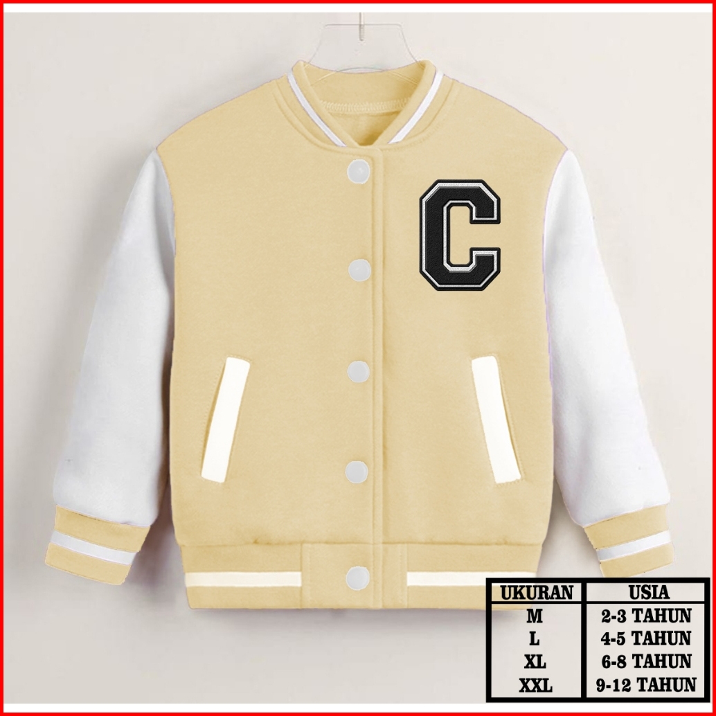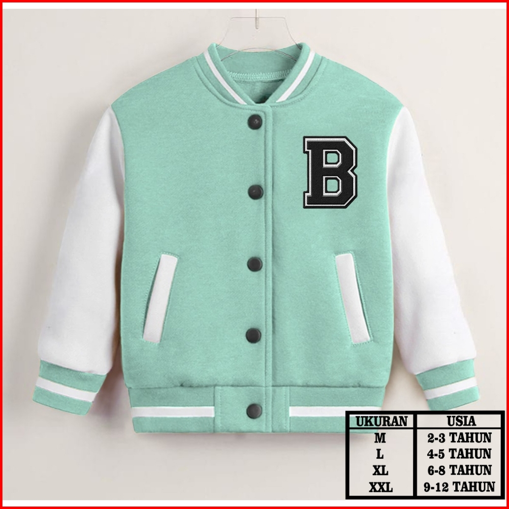 Jaket Baseball Varsity Inisial Huruf A-z Laki Laki Perempuan Usia 2-12 Tahun Hoodie Sweater Anak